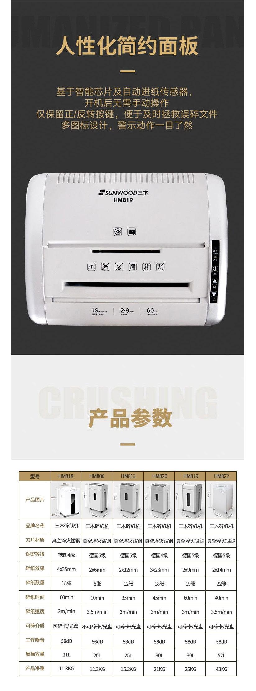 Trituradora de papel Sanmu HM819, trituradora de archivos, para oficina, comercial, de alta confidencialidad, de gran capacidad.