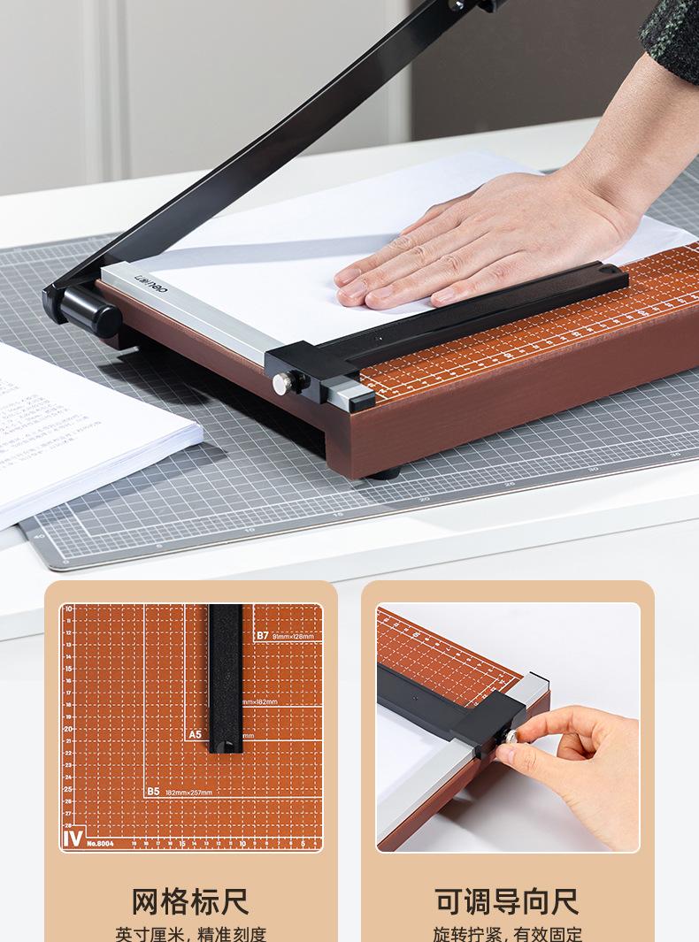 Cortadora de papel Deli 8004, cortadora de papel manual de madera, cortadora de tarjetas de presentación, cortadora de fotos, cuchilla afilada para cartón, cortadora de papel A4