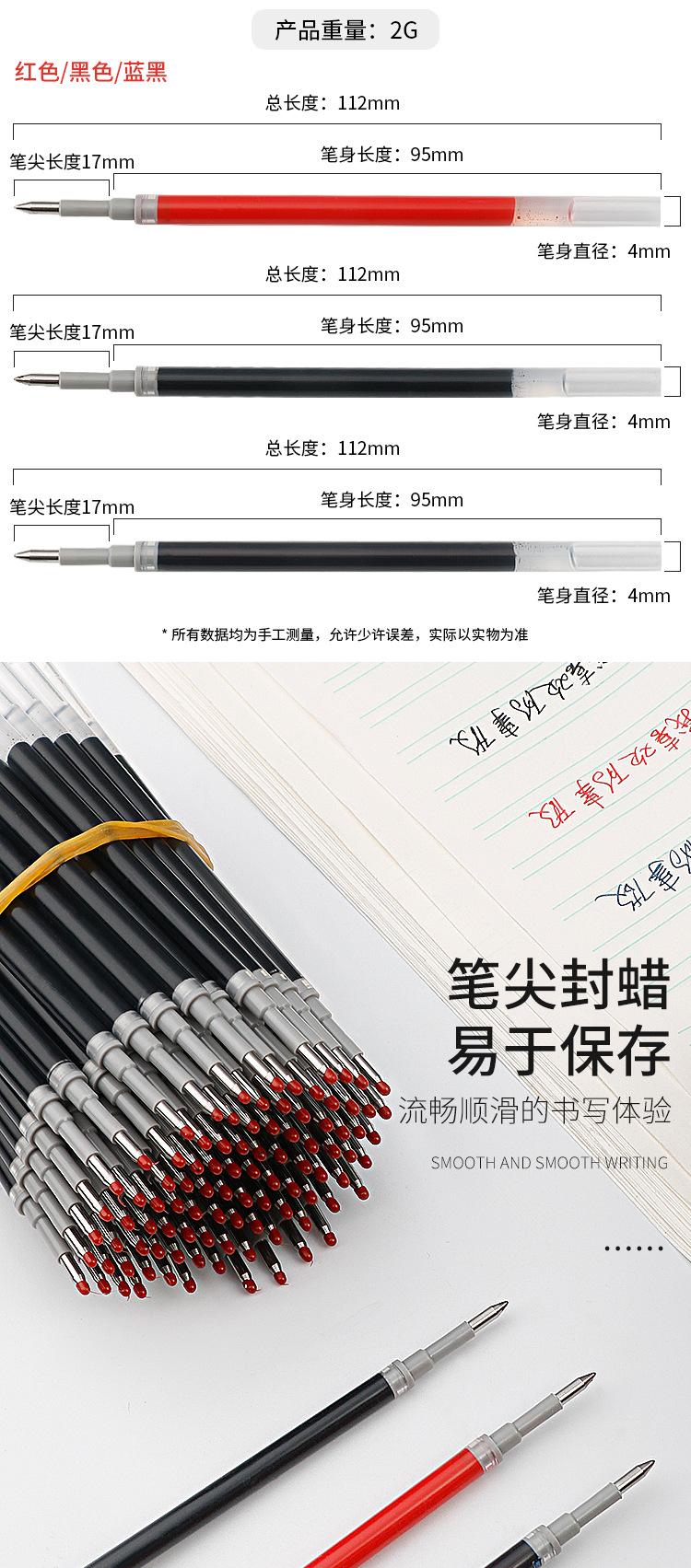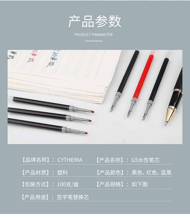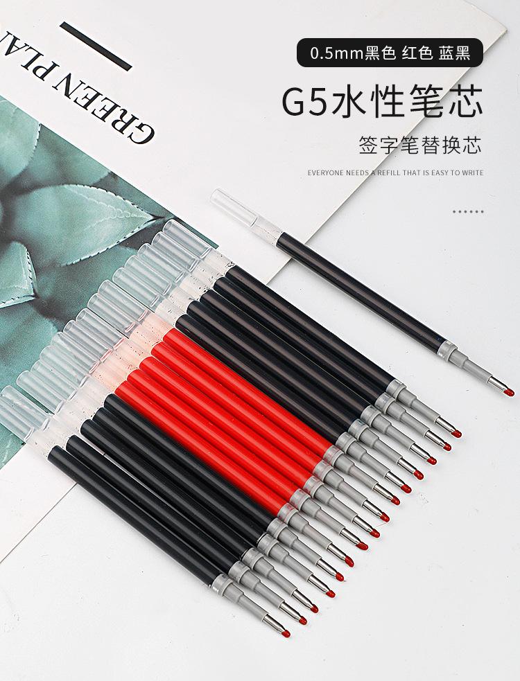 Recambio de bolígrafo G5 a base de agua para firma de examen de estudiante, núcleo de repuesto, punta de 0,5 mm, recarga de cuentas negras