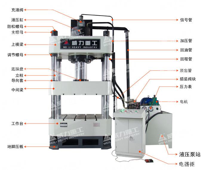 Prensa Hidráulica de Formado de Pastillas de Freno Automotriz Weili Heavy Industry 100 Toneladas 200 Toneladas Prensa Hidráulica Multifuncional de Tres Vigas y Cuatro Columnas