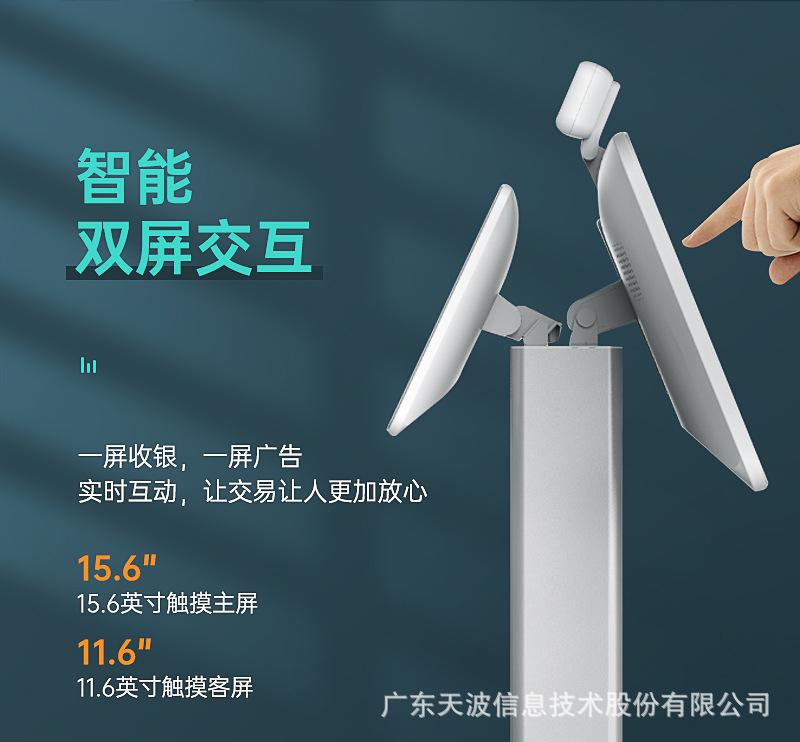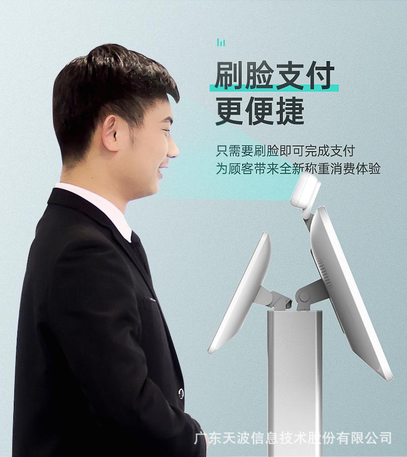 La caja registradora con báscula integrada de pago por reconocimiento facial de nuevo retail de supermercado personalizada de Telbo adopta un diseño de doble pantalla táctil, con una pantalla principal táctil capacitiva de 15.6 pulgadas con una resolución de 1920*1080, y una pantalla táctil capacitiva para el cliente de 11.6 pulgadas con una resolución de 1366*768. Cuenta con una pantalla grande táctil de alta definición, una pantalla grande capacitiva multitáctil y una sensación de control suave. Integra la tecnología de visualización inteligente de doble pantalla auto-ocupada de Telbo, que puede realizar un lado para el cobro y el otro para publicidad, generando mayores ganancias para tiendas, grandes supermercados y restaurantes inteligentes.
