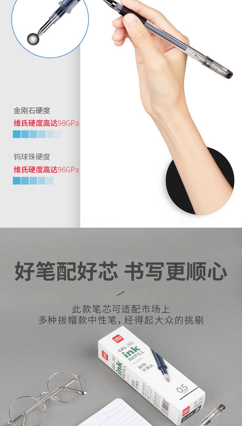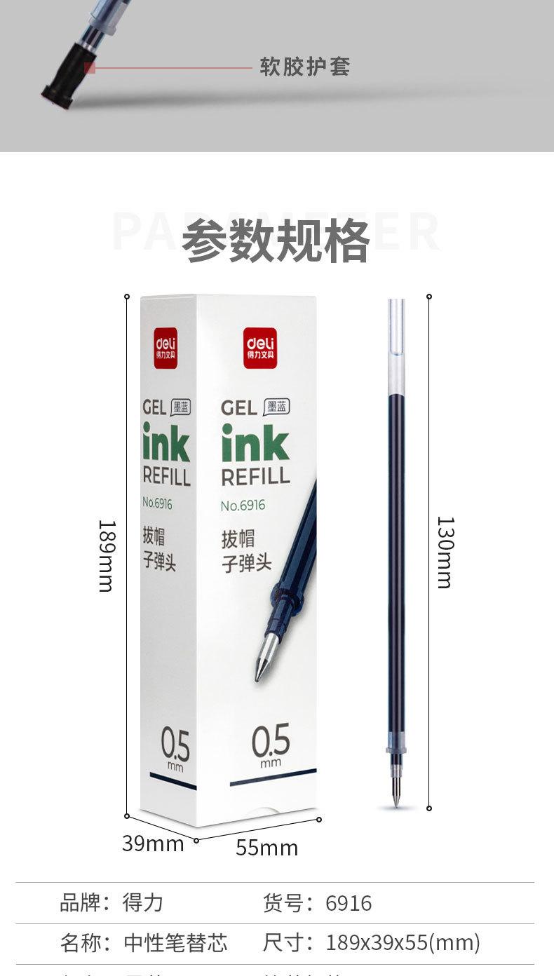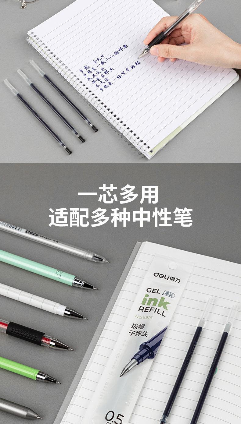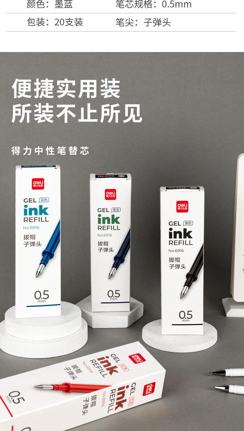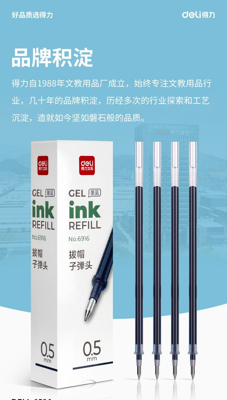 Recambio Deli 6916 de 0,5 mm para bolígrafo de gel, recambio universal Moran Bullet, recambio de agua para estudiantes