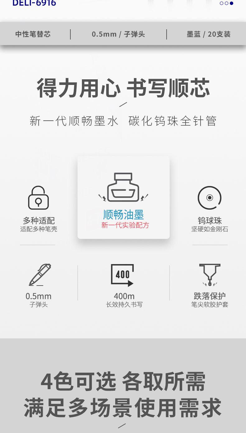 Deli 6916 neutral refill 0.5mm bullet head (dark blue) (branch)