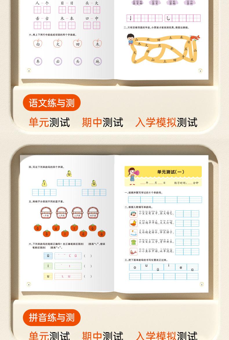Pinyin practice and test, Mathematical practice and test, Chinese practice and test