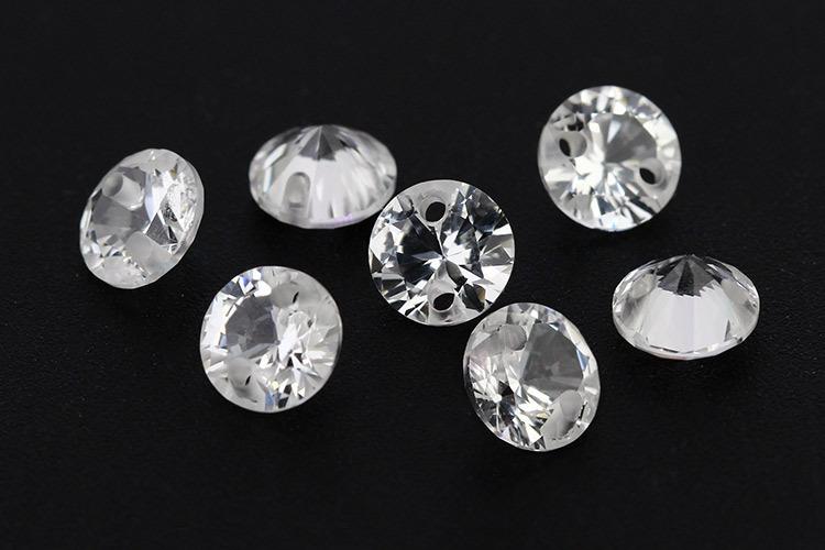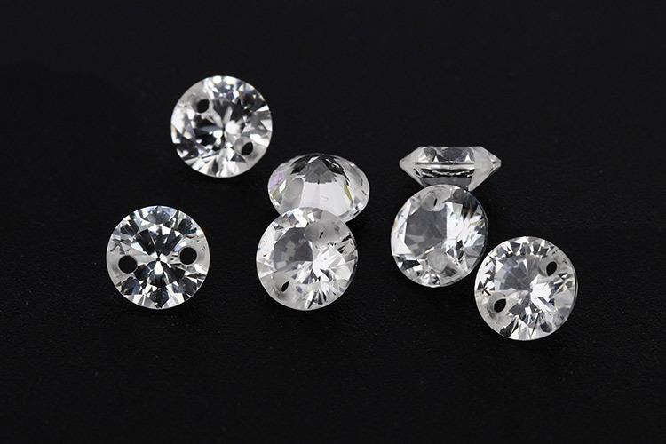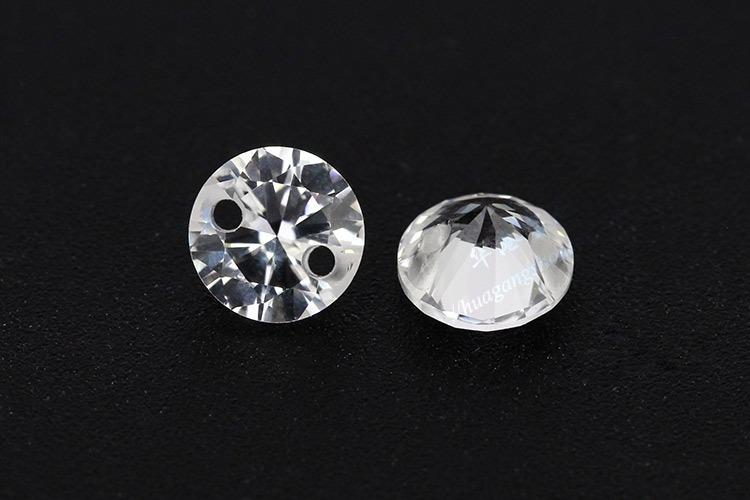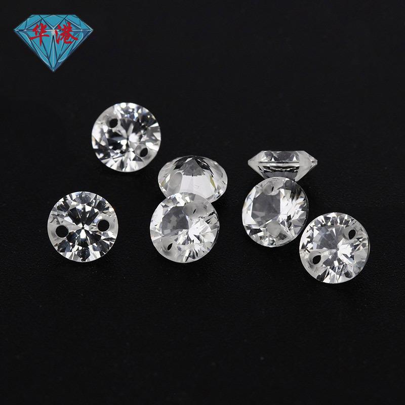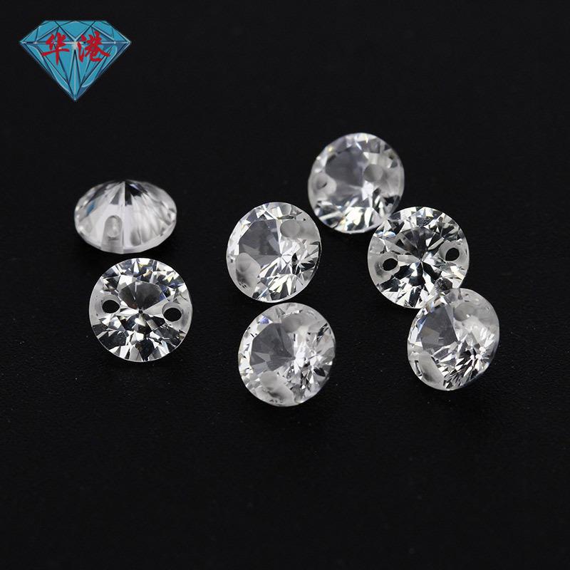 Gema Huagang de doble agujero, corindón blanco redondo, n.° 12, piedra desnuda, venta al por mayor, incoloro, transparente, sintético, blanco, azul, tesoro, fondo puntiagudo, diamante