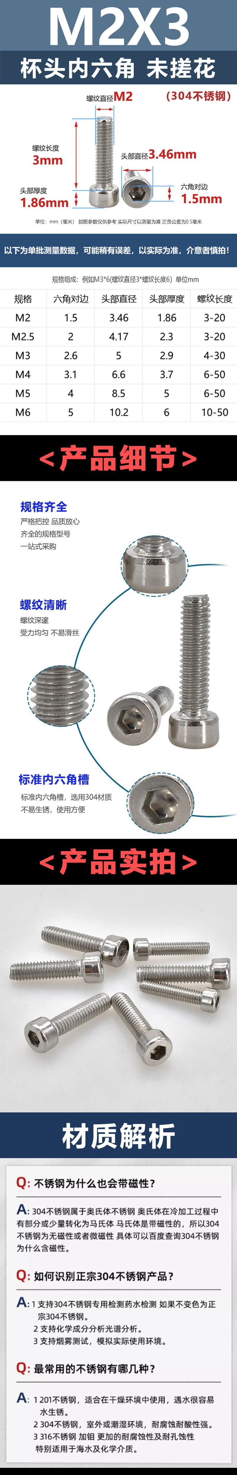 M2 * 3(304 cup head hexagon not rubbed)(100), M2 * 4(304 cup head hexagon not rubbed)(100), M2 * 5(304 cup hea...