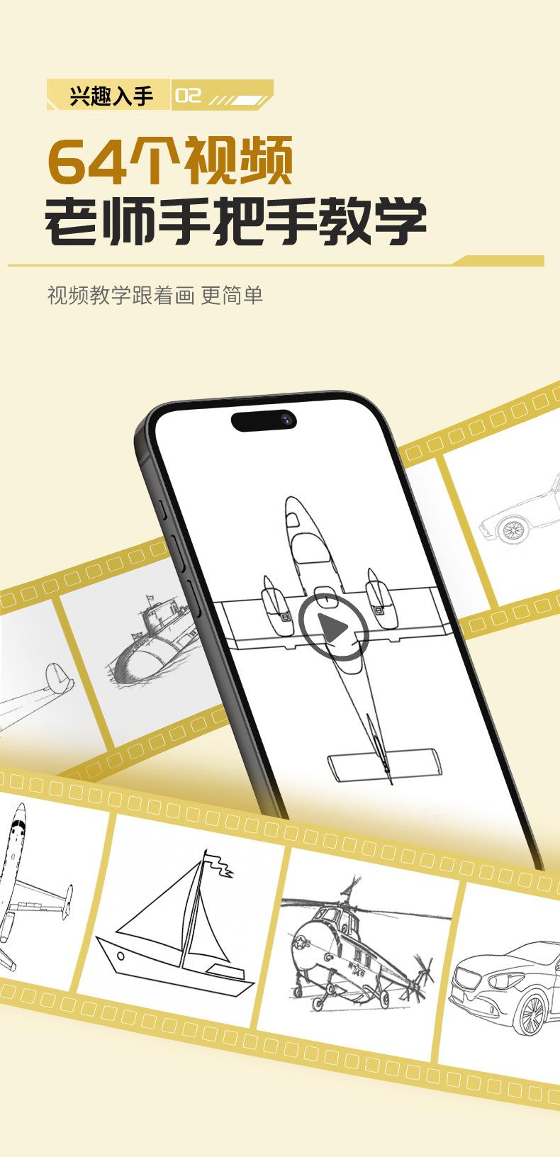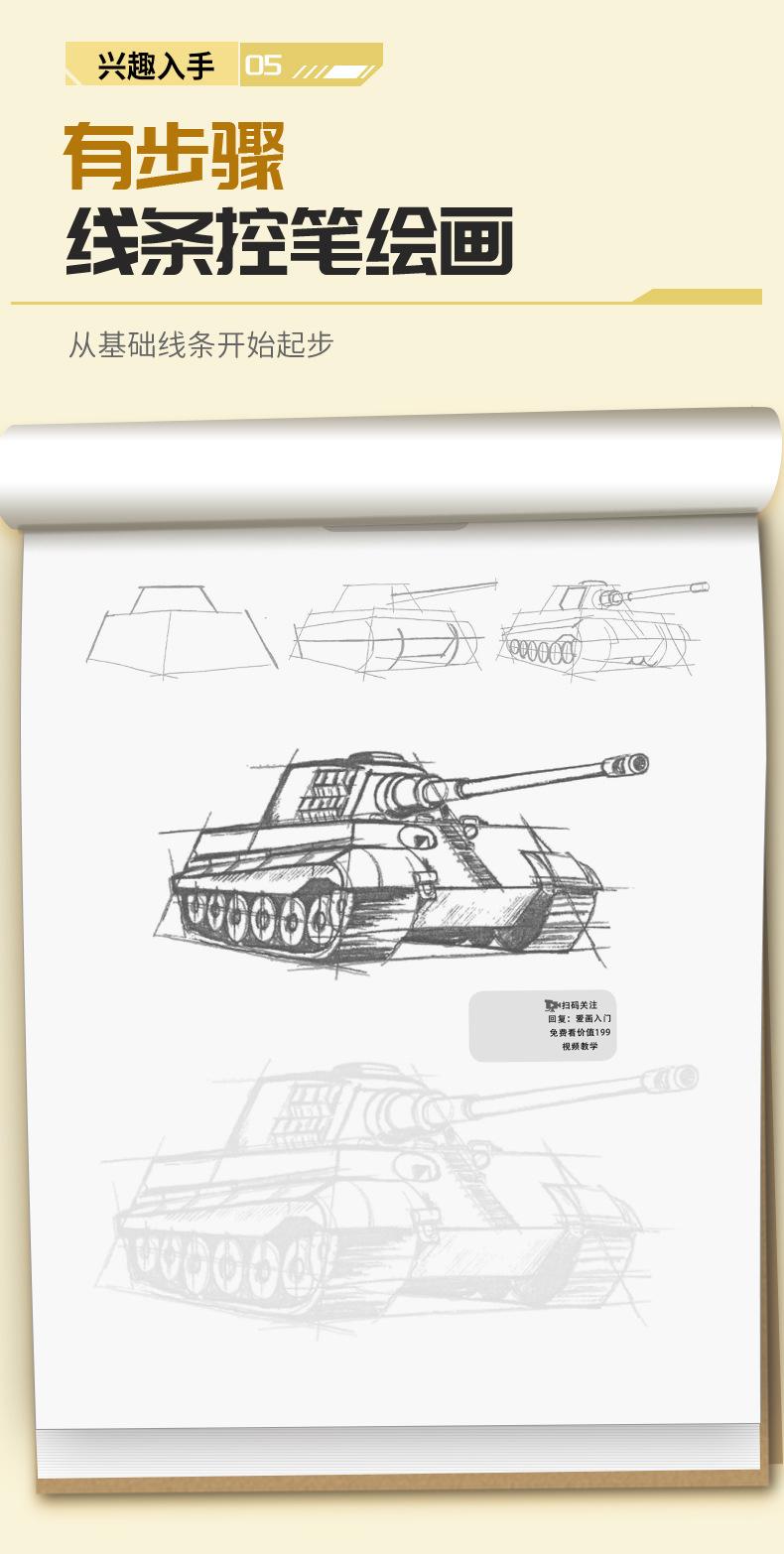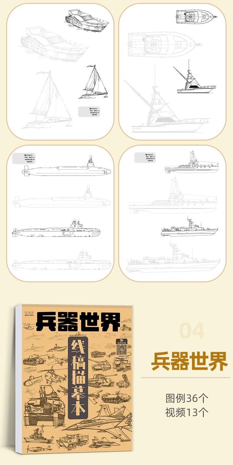 Libro de seguimiento de borrador de línea de aeronaves y automóviles, barco, arma, caza, tanque, dibujos animados, dibujos animados, técnica de control de lápiz de dibujos animados
