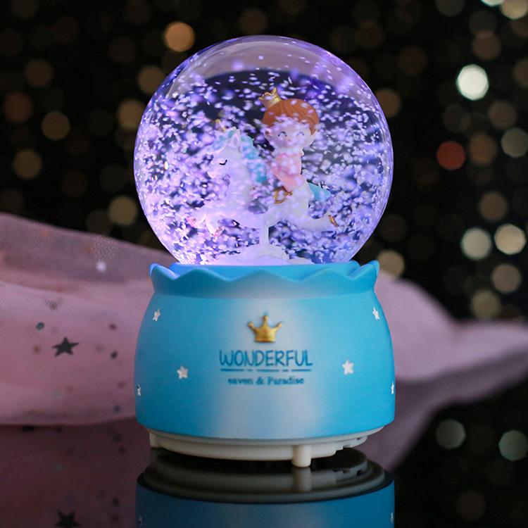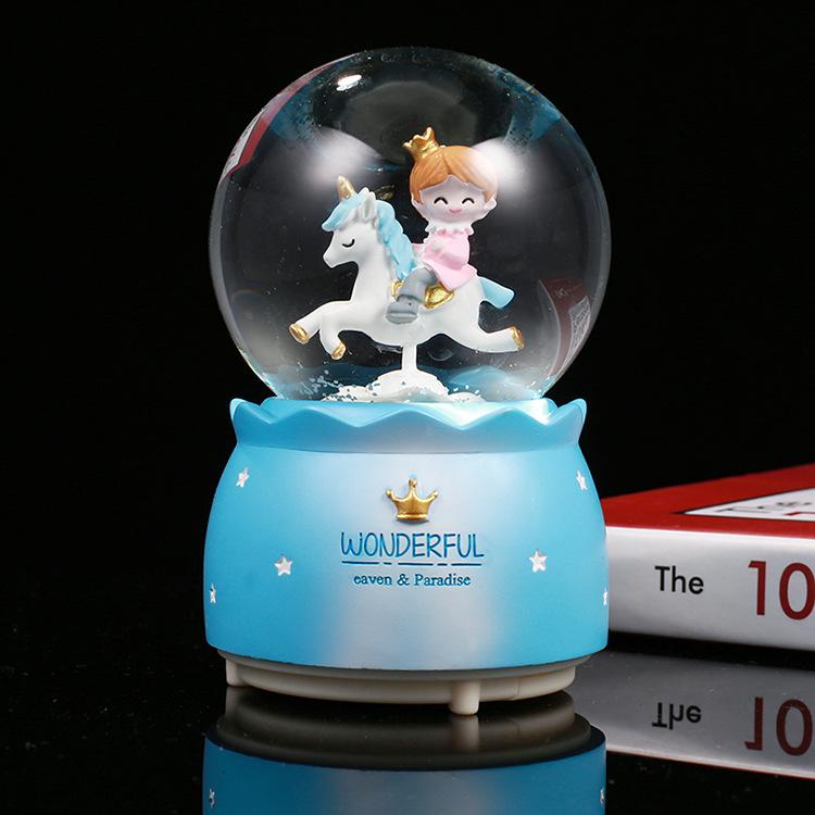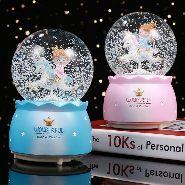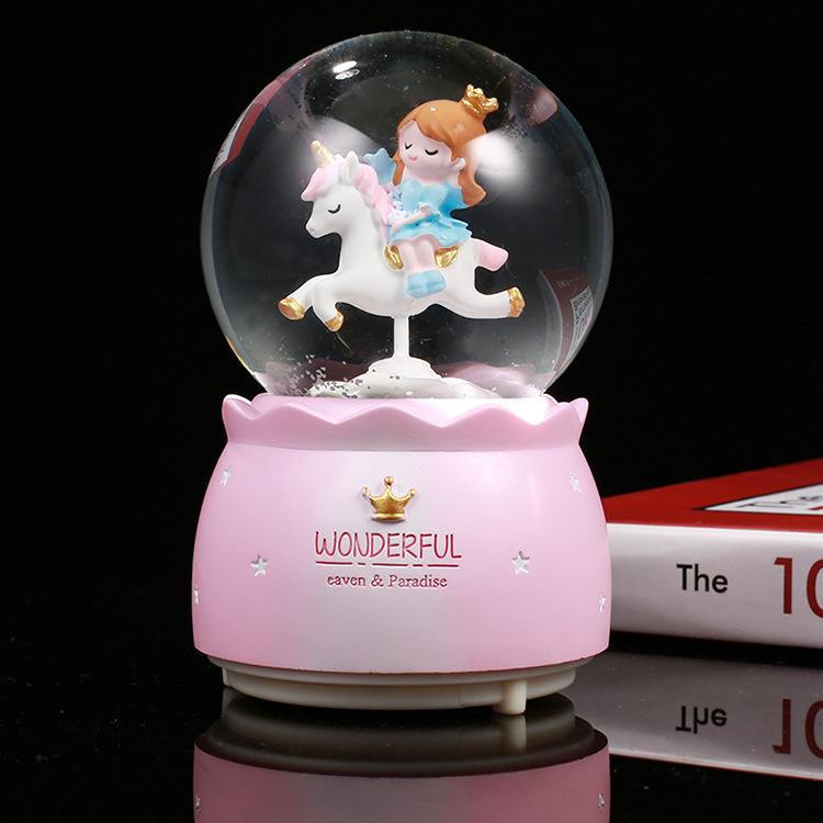Bola de cristal de unicornio de dibujos animados para parque infantil, ideal para estudiantes, regalos de cumpleaños, luces, caja de música, adornos para habitación y dormitorio.