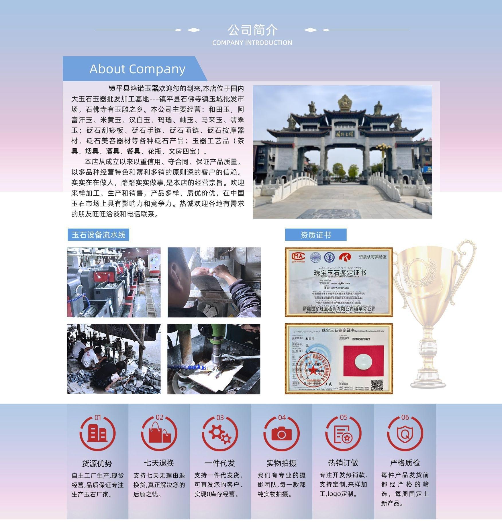 1. ¿Cuál es el precio mínimo de aprobación? ¡Puedes iniciar el lote si cumples con el tamaño mínimo de lote de un solo producto, no se requiere cantidad! ! ! 2. ¿Puedo comprar 2 piezas? ¿Puedo vender al por mayor si la cantidad es inferior a 200 yuanes? Sí, siempre que cumpla con el requisito de lote mínimo bajo para un solo producto, también se puede enviar una pieza. 3. ¿Cómo comprar? (1) Usuario registrado (2) Desde la columna de categoría de la izquierda, seleccione el producto que le guste y colóquelo en el carrito de compras. (3) Envíe el pedido, seleccione el método de pago y pague (4) Envíe la mercancía después de confirmar el pago. 4. ¿Cómo transportar? Enviamos todos nuestros productos mediante envío exprés, que se entregan directamente a su domicilio. Disfrute de una compra cómoda y cómoda sin salir de casa, sin tener que desplazarse para obtener sus productos. Para ahorrarle en gastos de envío, nos pondremos en contacto con usted para informarle sobre la logística de los productos de la competencia. Usted mismo se encargará de la logística. Nuestros servicios exprés STO y EMS económico pueden enviar piezas estándar EMS a lugares donde no es posible realizar envíos exprés. 5. ¿Método de pago? 1. Pago con Alipay: Primero, abone el dinero a Alipay. Tras recibir la mercancía, confirme la recepción. Si no está satisfecho con la mercancía, puede solicitar un reembolso o una devolución. Seguro y cómodo. ② Pago por banca en línea: Si ha solicitado la banca en línea, puede enviarnos el dinero directamente en línea y luego notificar al personal de atención al cliente. Una vez recibido el pago, enviaremos la mercancía el mismo día o al día siguiente. 3.Transferencia bancaria: Después de la transferencia bancaria, notifíquenos la entrega. ④ Pago contra reembolso: Solo colaboramos con Deppon Express para el pago contra reembolso. Es decir, el pago contra reembolso solo se puede realizar en lugares con acceso a Deppon Express. El pago contra reembolso no incluye el envío y se aplica un cargo por gestión del 5% del importe total del pago. Este cargo lo cobra Deppon Express. 6. ¿Qué tal el servicio postventa? (1) Compensación por daños de transporte: si la mercancía se daña o se pierde durante el transporte, compensaremos completamente al cliente por la pérdida. (2) Si no está satisfecho con los productos recibidos o si hay algún problema con el producto, puede devolverlos o cambiarlos dentro de los tres días siguientes a su recepción. Si el plazo supera los tres días, se considerará que no tiene ninguna objeción y no se realizará la devolución ni el cambio. 7. (Excepto productos de piedra y cajas de embalaje) ¿Cuáles son las políticas preferenciales para otros productos? ① Si compra más de 1000 yuanes de una sola vez en nuestra tienda, los productos disfrutarán de envío gratuito. ② Si compras en nuestra tienda más de dos veces, recibirás un pequeño obsequio. ③ Nuestra tienda tiene un negocio de puntos; por cada 100 yuanes ganas 1 punto, y los puntos se pueden usar para compensar el precio de compra. ¡Los clientes cuyo volumen mayorista acumulado supere los 50.000 yuanes pueden disfrutar de un descuento a largo plazo del 9,9% además de los descuentos anteriores! 8. ¿Están todos los productos disponibles? ¿Tienen certificado? Todos los productos de nuestra empresa son de alta calidad. El jade hetiano, la jadeíta y otros jades pueden certificarse. Cada producto tiene un número de certificado independiente y los resultados de las pruebas pueden consultarse en línea. Si necesita un certificado, infórmelo a nuestro personal de atención al cliente. Se cobrará una tarifa de prueba adicional por cada producto. 9. ¿Cómo se empaqueta el producto? ¿Viene con una caja de regalo? ¿Todos los colgantes incluyen cuerdas? Debido a la importante reducción en el precio al por mayor de nuestros productos, los productos actuales no incluyen caja de regalo, ni cuerdas ni cordones de jade. Quienes necesiten caja de regalo pueden dirigirse a la sección de empaquetado para elegir el empaque y los cordones que mejor se adapten a sus necesidades. Todos nuestros productos se entregan en una bolsa de plástico rígido o film de burbujas para garantizar un transporte seguro.