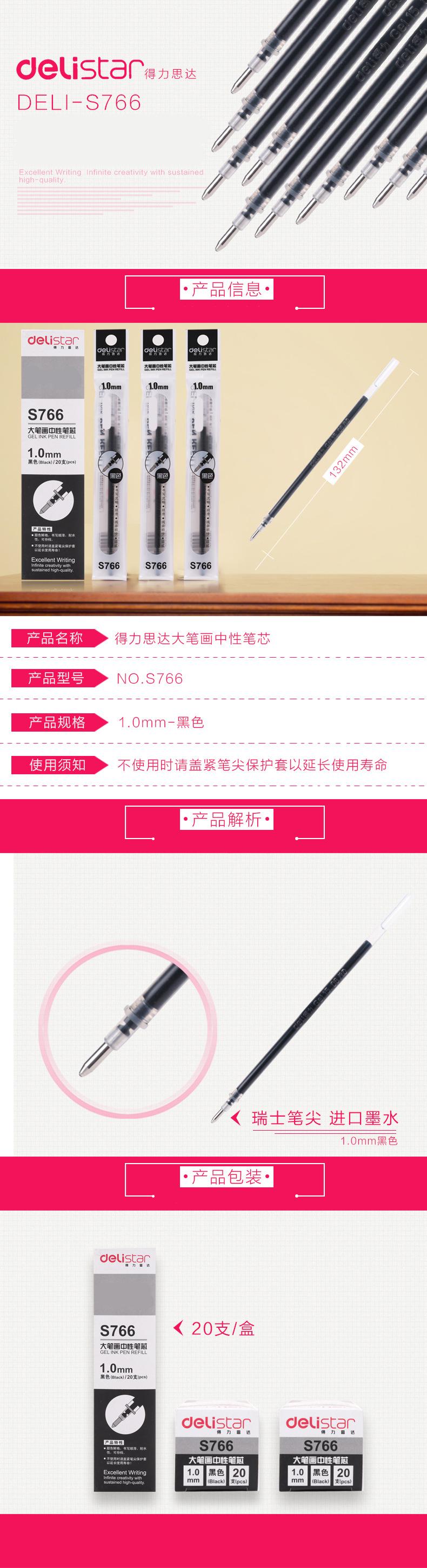 El recambio neutro de pincel grande Deli S766 es adecuado para los bolígrafos con acabado Deli S34, S73, S29.