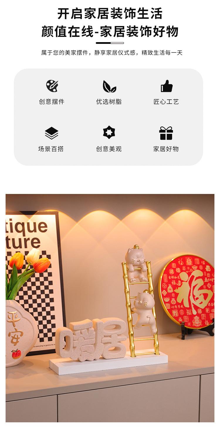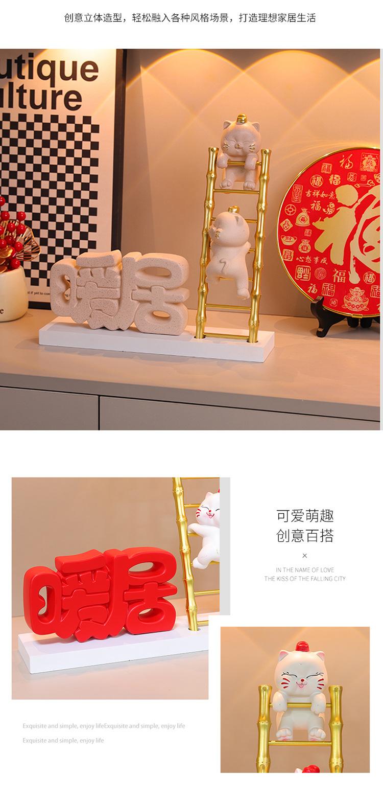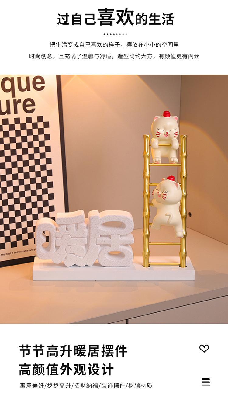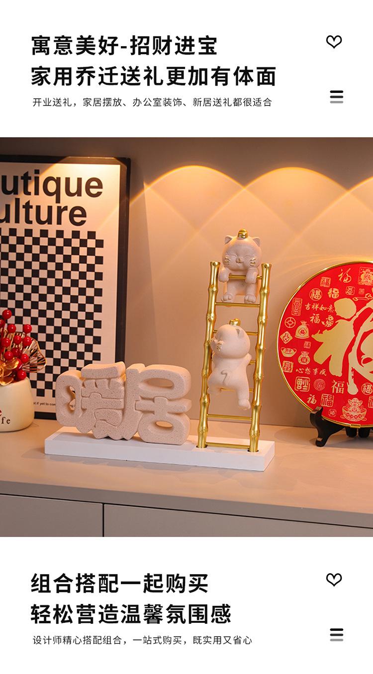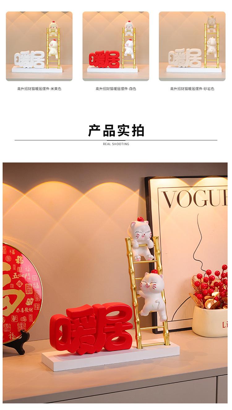 7303E-01 High-rise Lucky Cat Warm House Ornaments-Beige