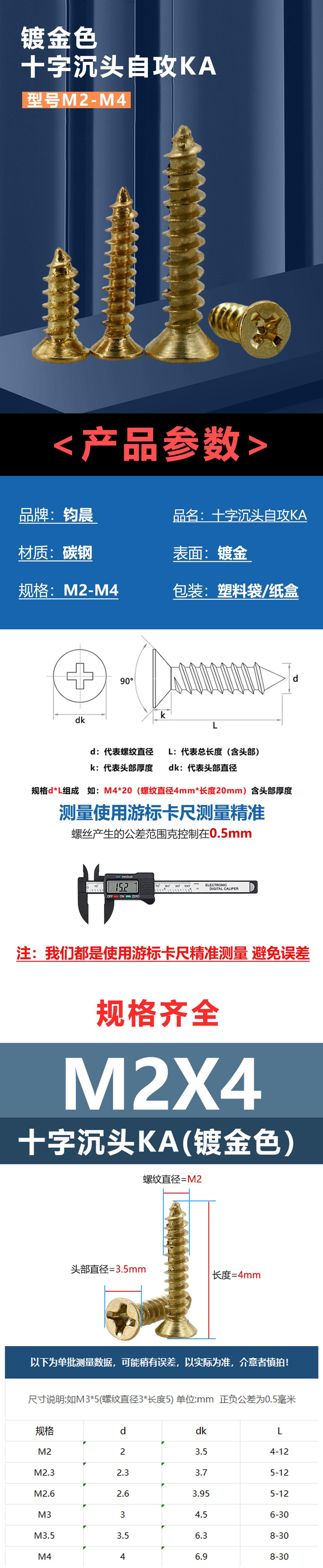 KA2 * 4 (gold-plated cross countersunk head self-tapping)(1000 PCs)