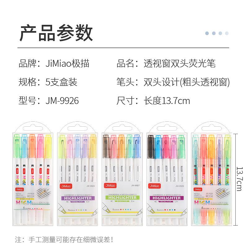 Bolígrafo fluorescente con ventana nueva, bolígrafo marcador para diario de estudiante, bolígrafo de cristal con cabezal de doble punta, bolígrafo fluorescente de gran apariencia, papelería