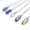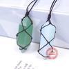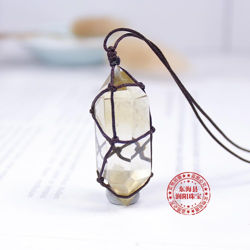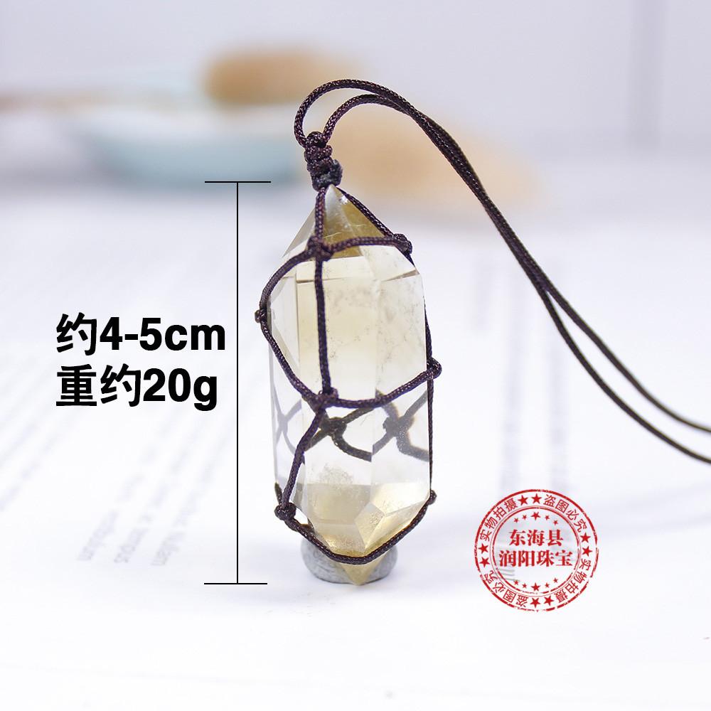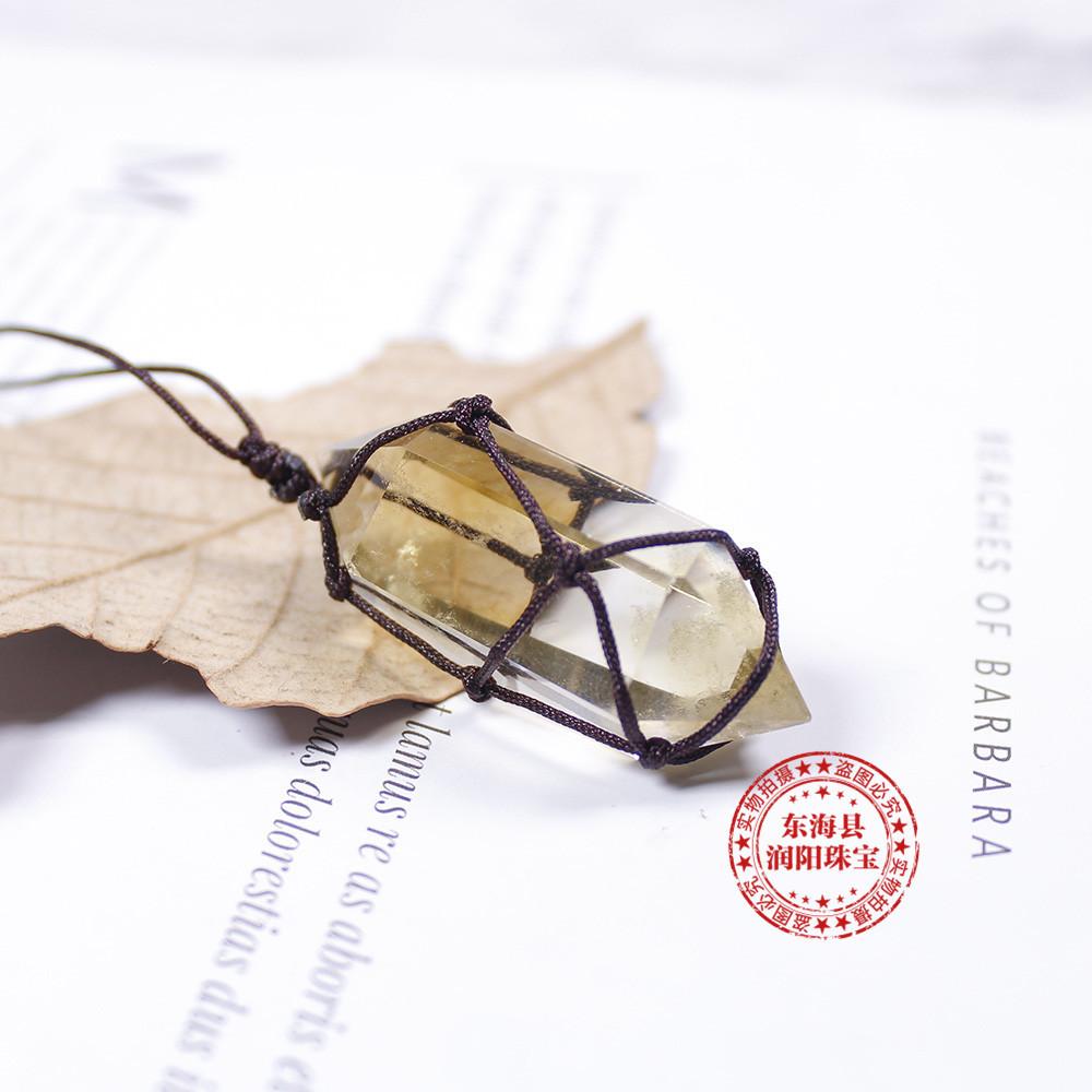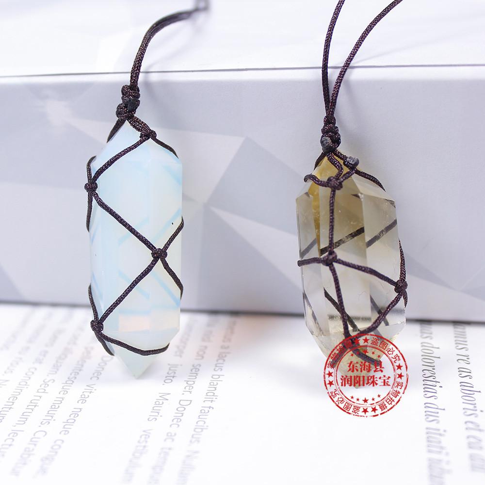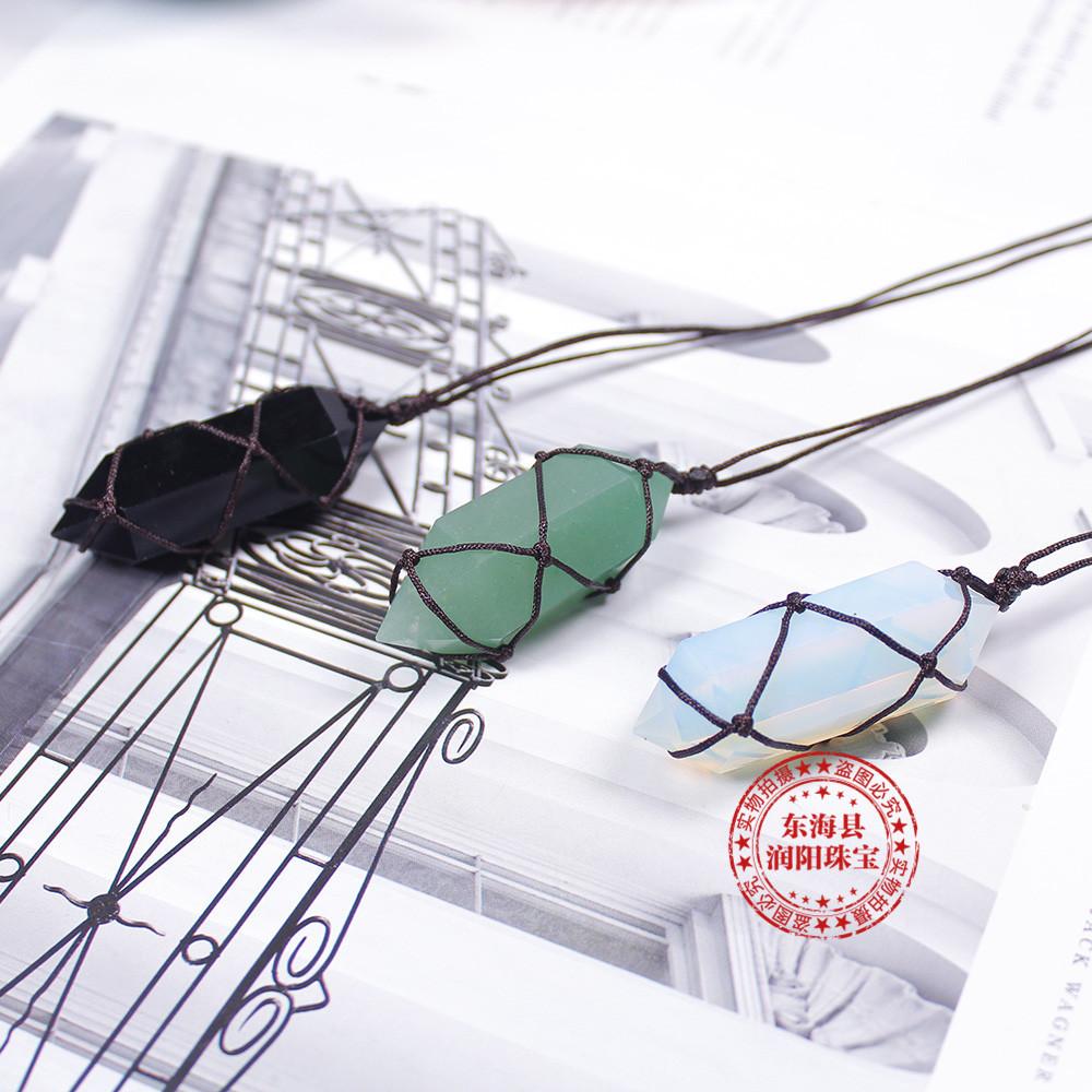 Donghai cristal natural piedra en bruto cristal doble punta prisma hexagonal colgante bolsa de malla tejida a mano joyería collar europeo y americano