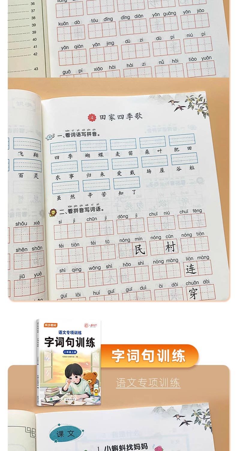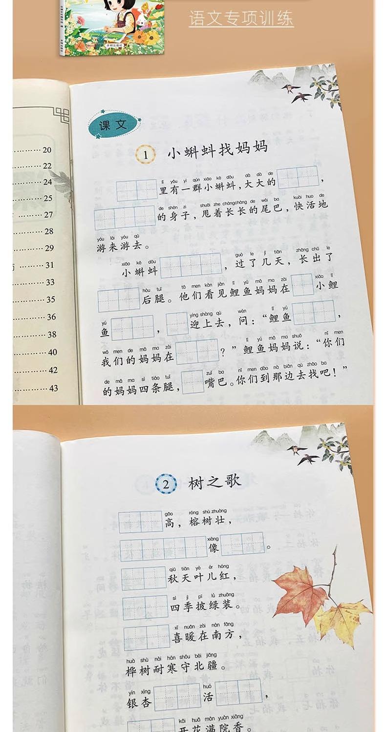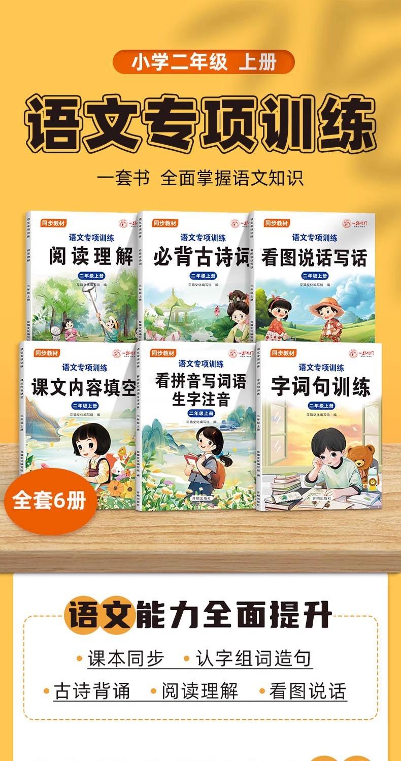El segundo grado, primer volumen, la escuela primaria debe recitar poesía antigua, comprensión de lectura, palabras y oraciones, entrenamiento y otros ejercicios de entrenamiento especiales chinos.