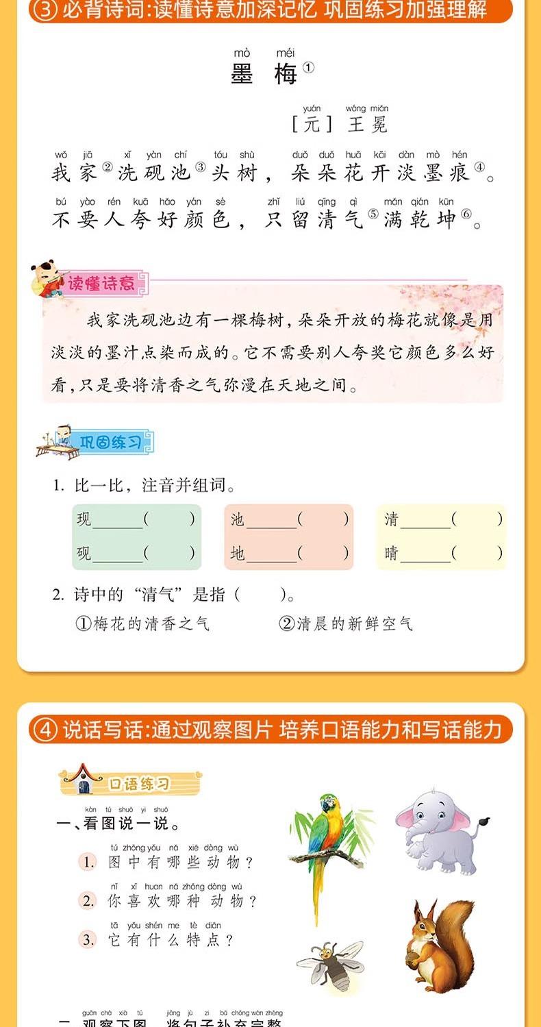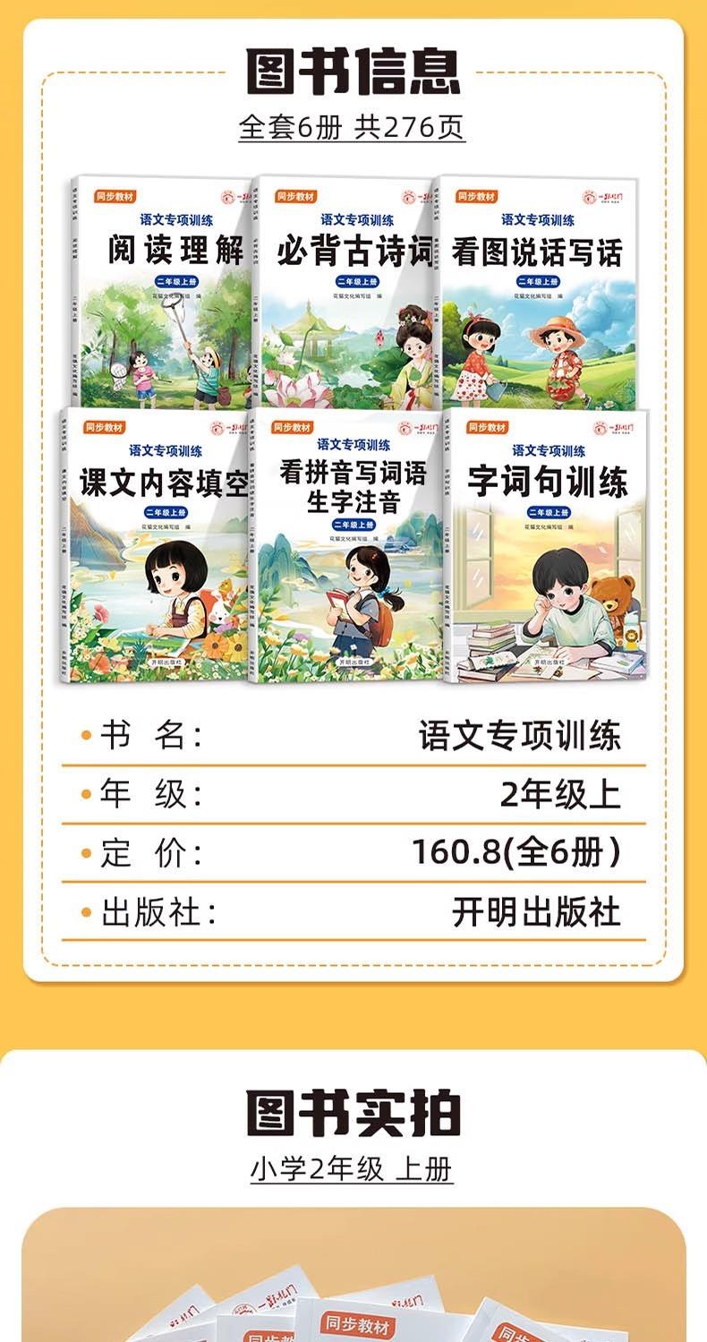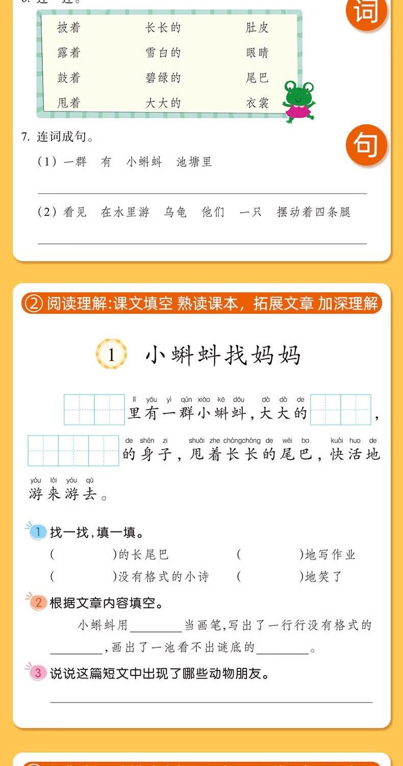 El segundo grado, primer volumen, la escuela primaria debe recitar poesía antigua, comprensión de lectura, palabras y oraciones, entrenamiento y otros ejercicios de entrenamiento especiales chinos.