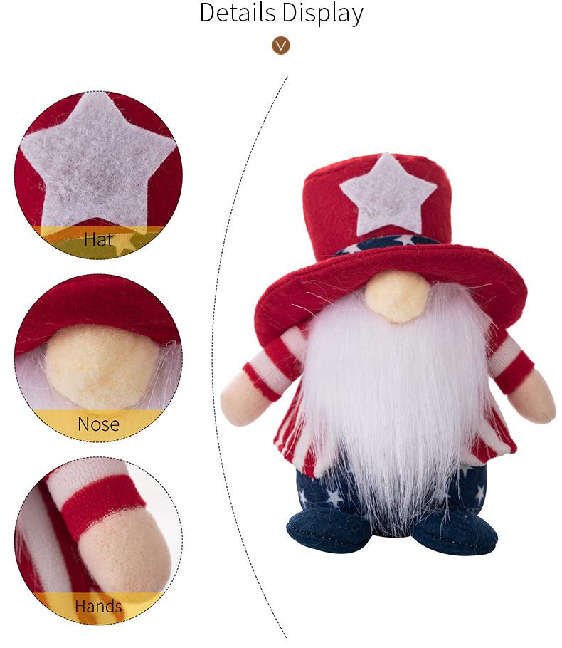 Decoraciones del Día de la Independencia de Hobbe, Día de los Estados Unidos, Duende Enano, Pentagrama del Día de la Independencia, Figura de Rudolph