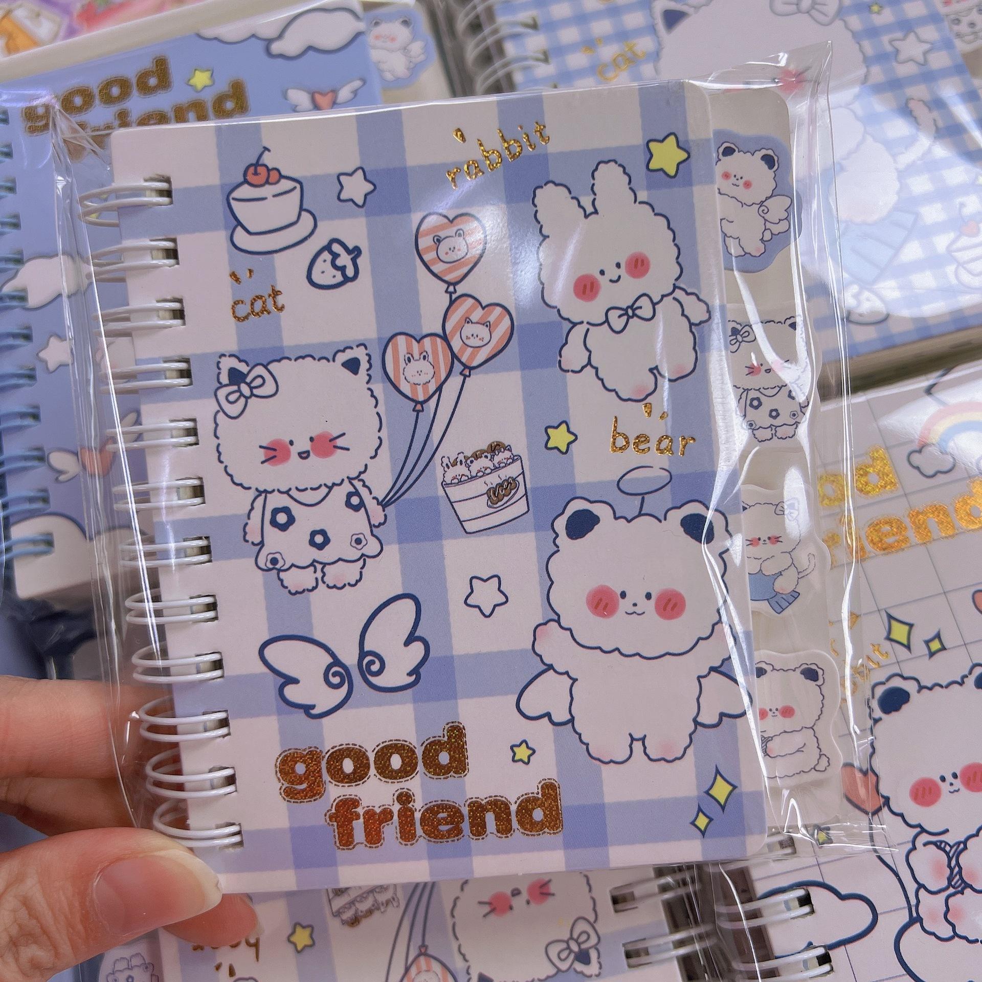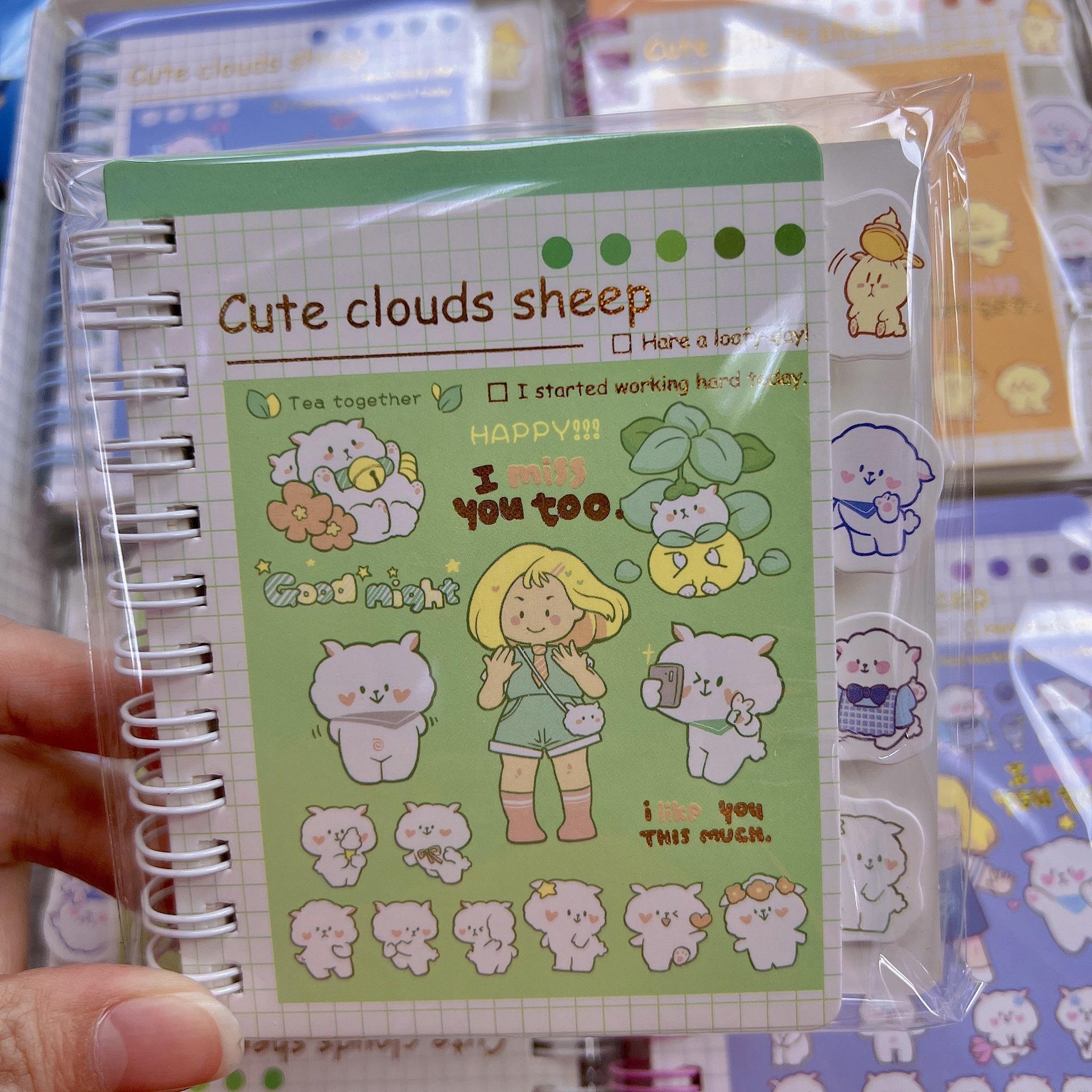Libreta de 100K con bobina abatible, diseño de dibujos animados lindos, portátil de bolsillo para estudiantes, 4 juegos de patrones, notas adhesivas pequeñas