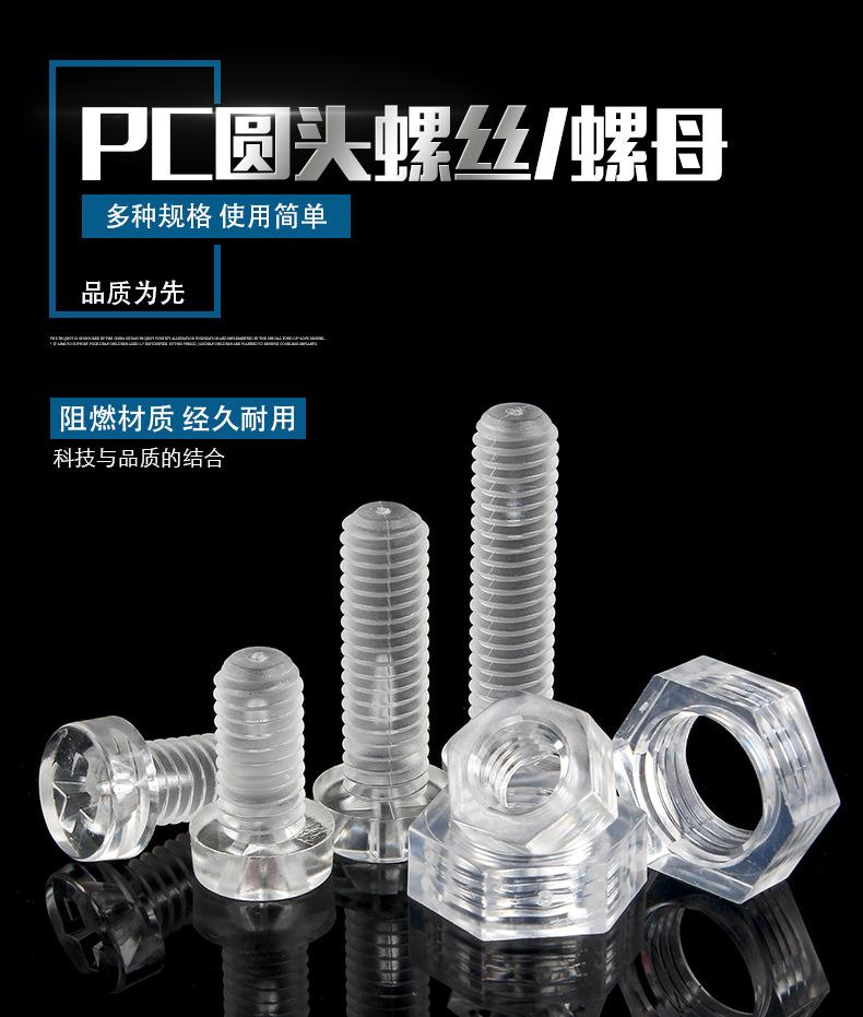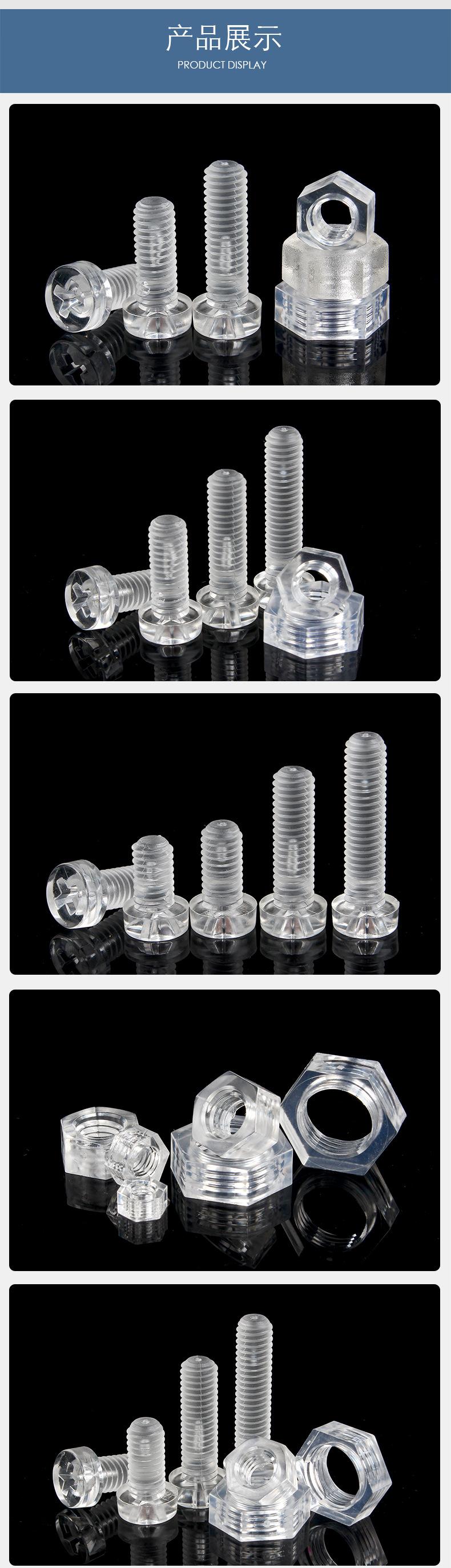 Tornillo de plástico transparente para PC, combinación de tuerca y tornillo de cruz de cabeza redonda, perno de cabeza plana Alec de plástico M2-M10