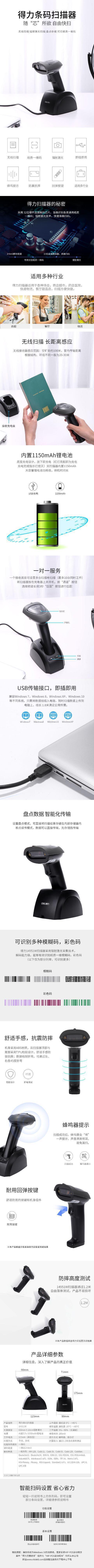 Escáner de código de barras Deli 14951W, escáner de código unidimensional, escáner de código de barras para caja registradora express de supermercado, pistola de código de barras