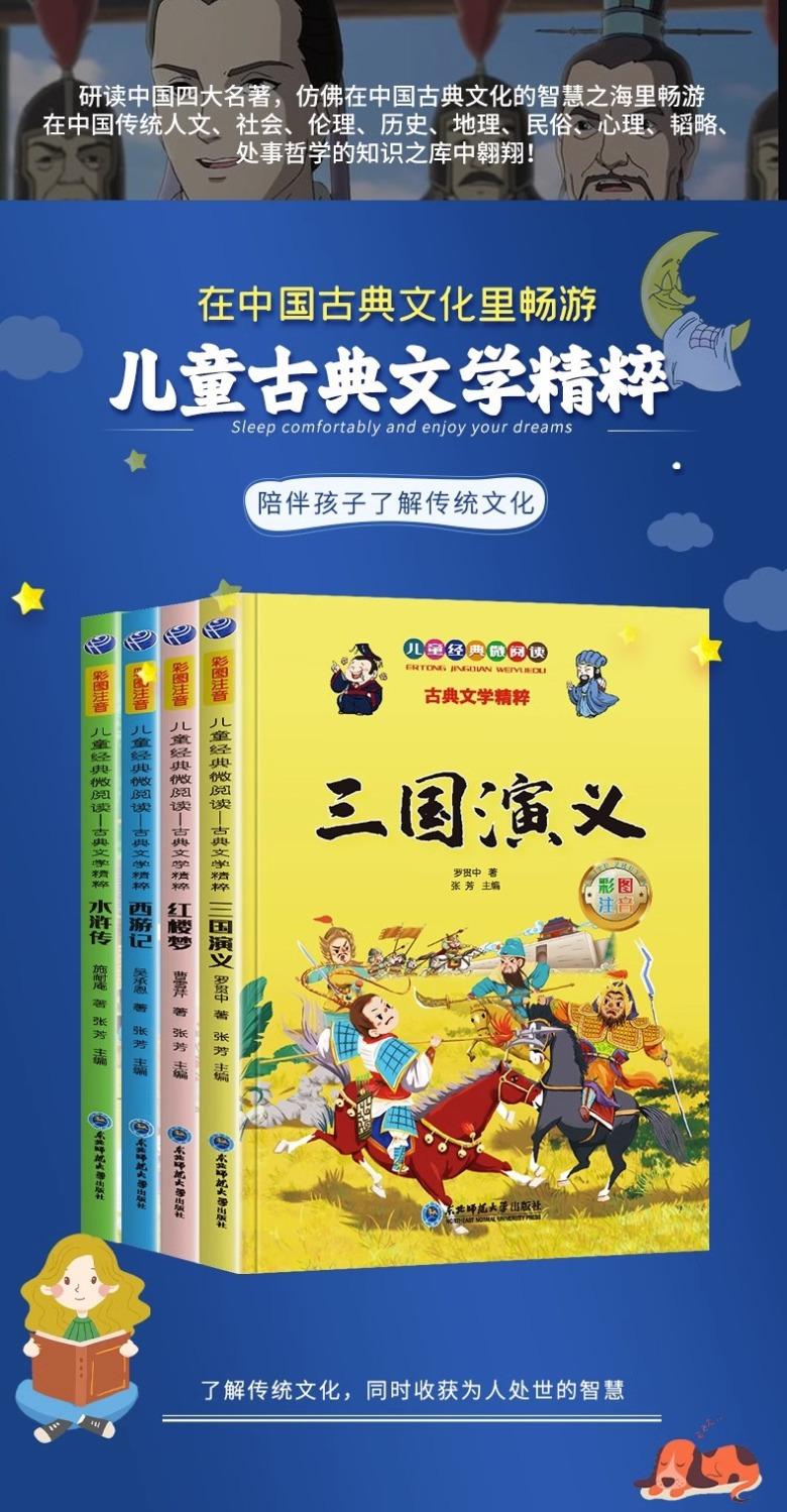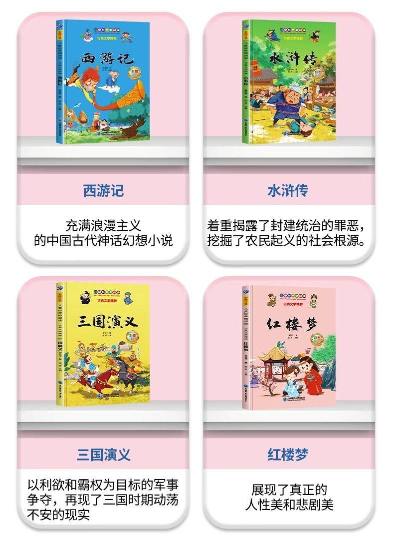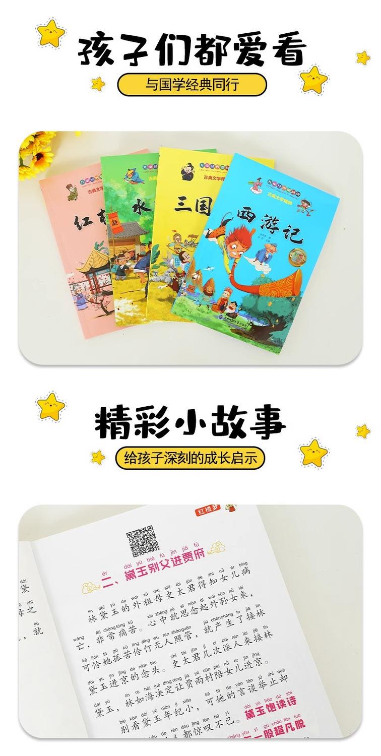 Cuatro libros famosos, 4 volúmenes, versión para estudiantes de primaria, Sueño de las Mansiones Rojas, Romance de los Tres Reinos, Viaje al Oeste, A la orilla del agua, mapa a color