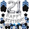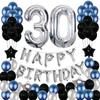 [Especificaciones]: Cumpleaños1 juego de letras + 6 estrellas de cinco puntas de 18 pulgadas + 2 números de película de aluminio de 40 pulgadas + 58 globos de látex de 12 pulgadas (24 azules, 24 negros, 10 plateados)
