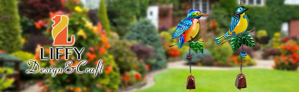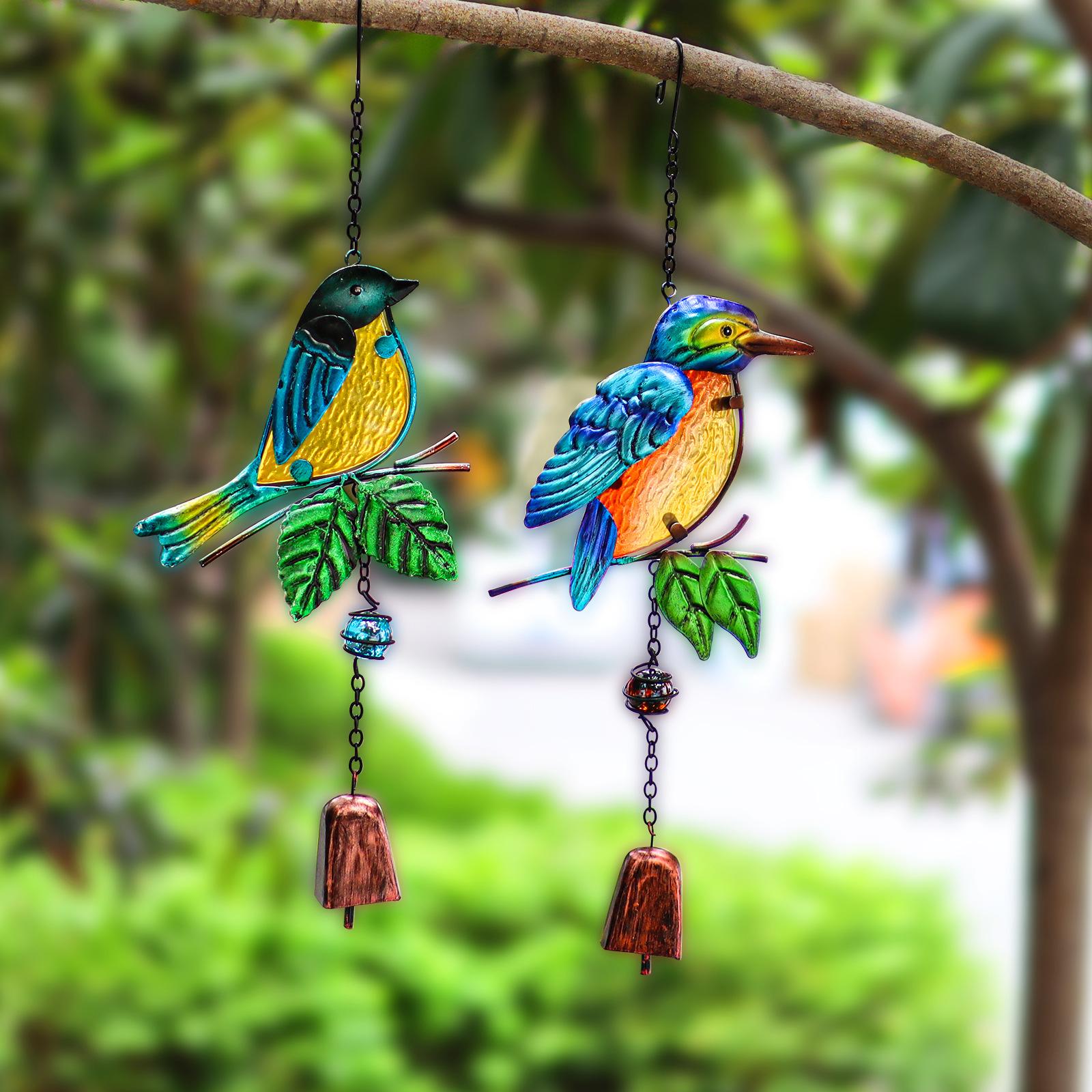 Campanas de Viento de Aves de Venta Caliente Transfronteriza Artesanías Hechas a Mano Vidrio Pintado Colgantes Decoración de Patio Carrillones de Viento de Metal al por Mayor