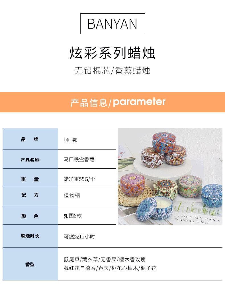 especificaciones del producto:Peso de cera 55 g/pieza + 5 % de fragancia, cada lata contiene 84 g