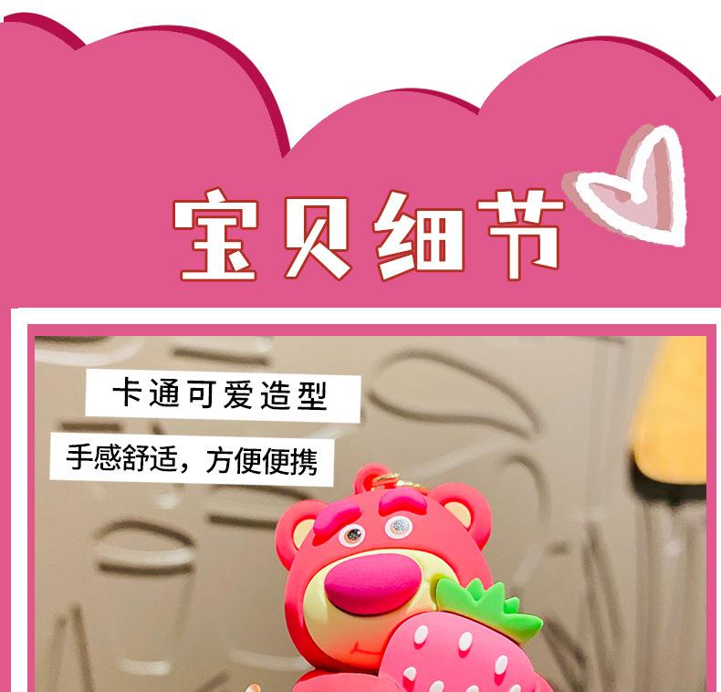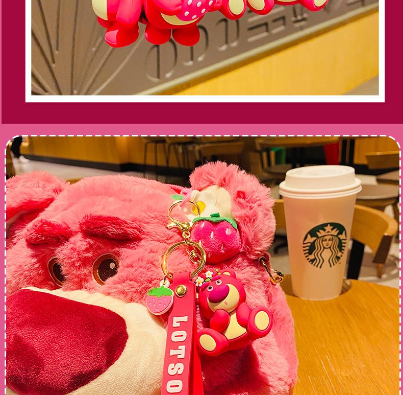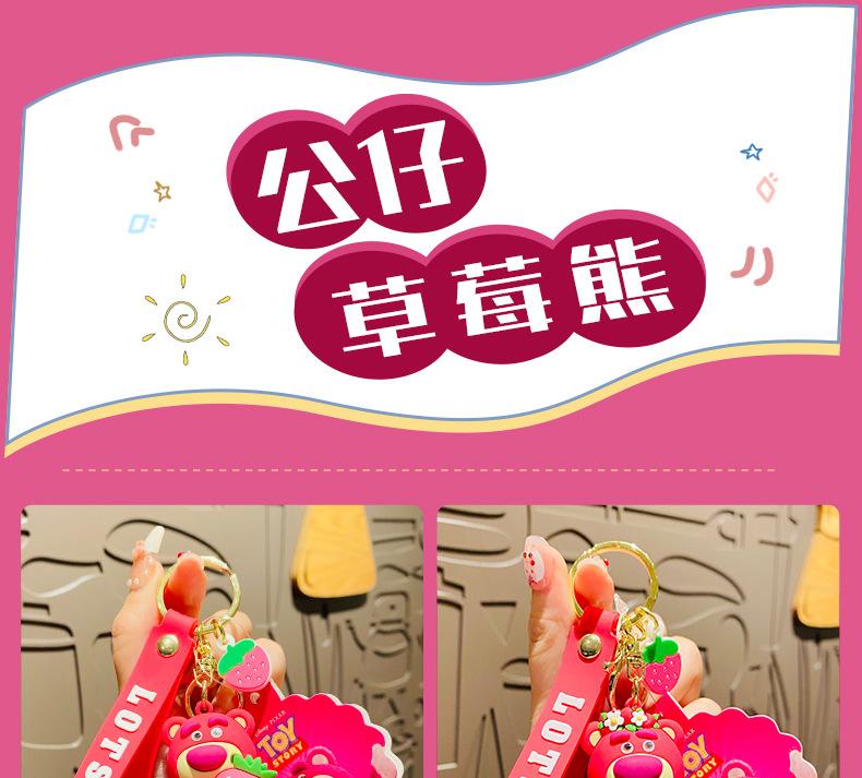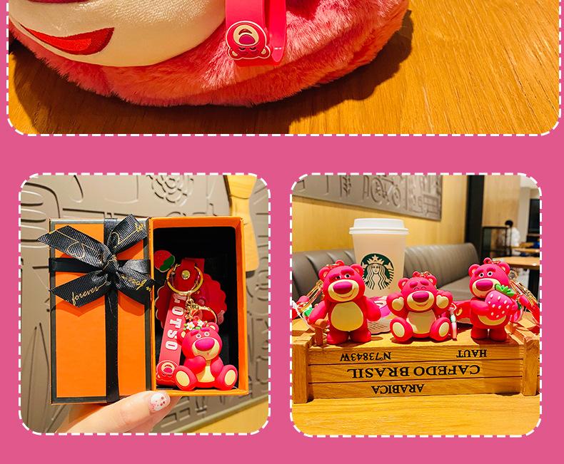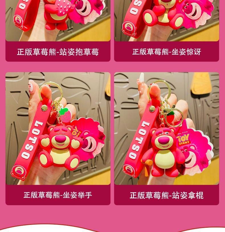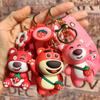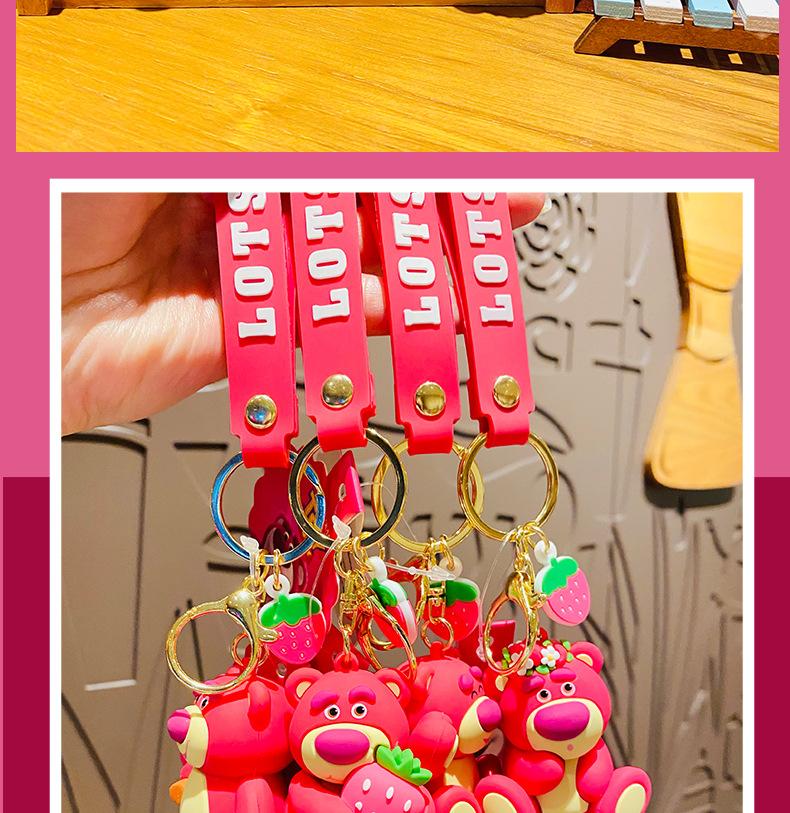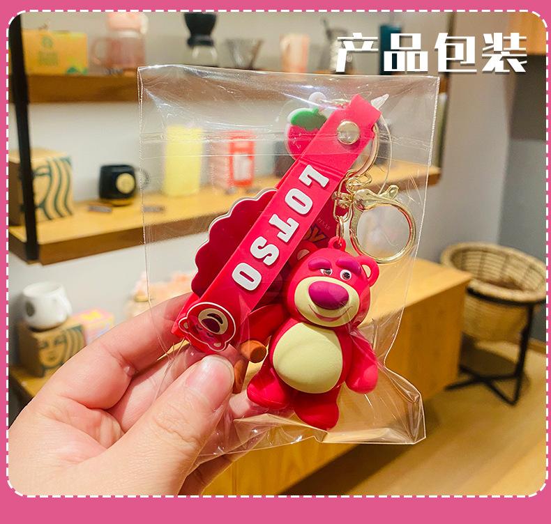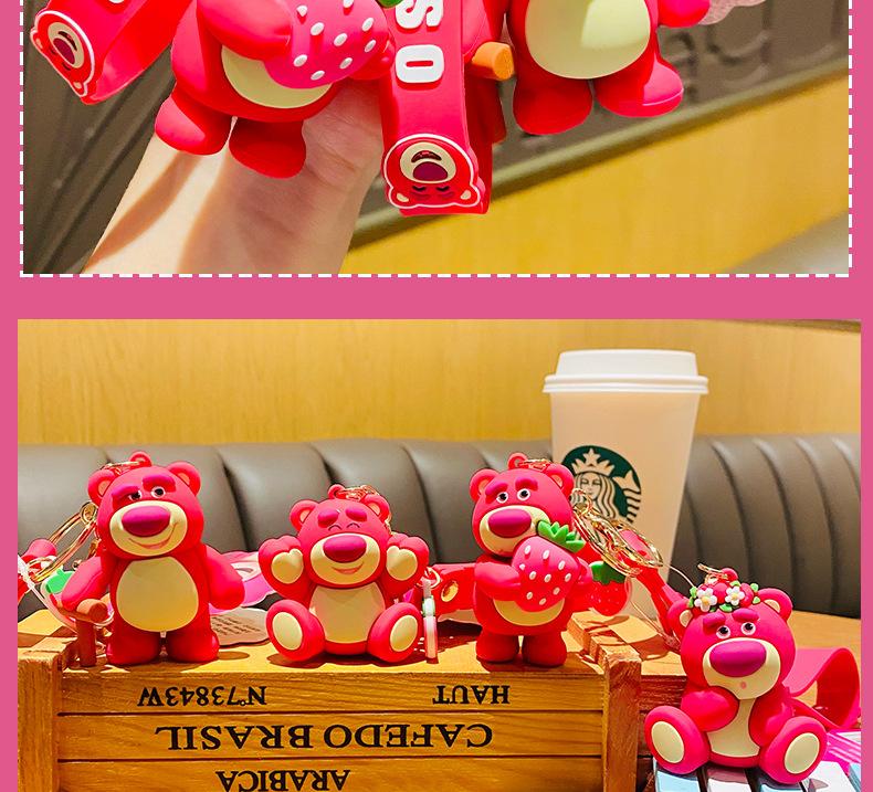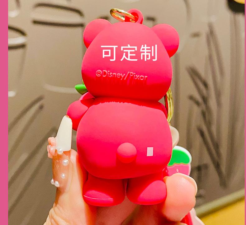 Llavero con forma de oso de fresa auténtico y bonito, con dibujos creativos, para coche, bolso escolar, regalo pequeño para pareja, venta al por mayor
