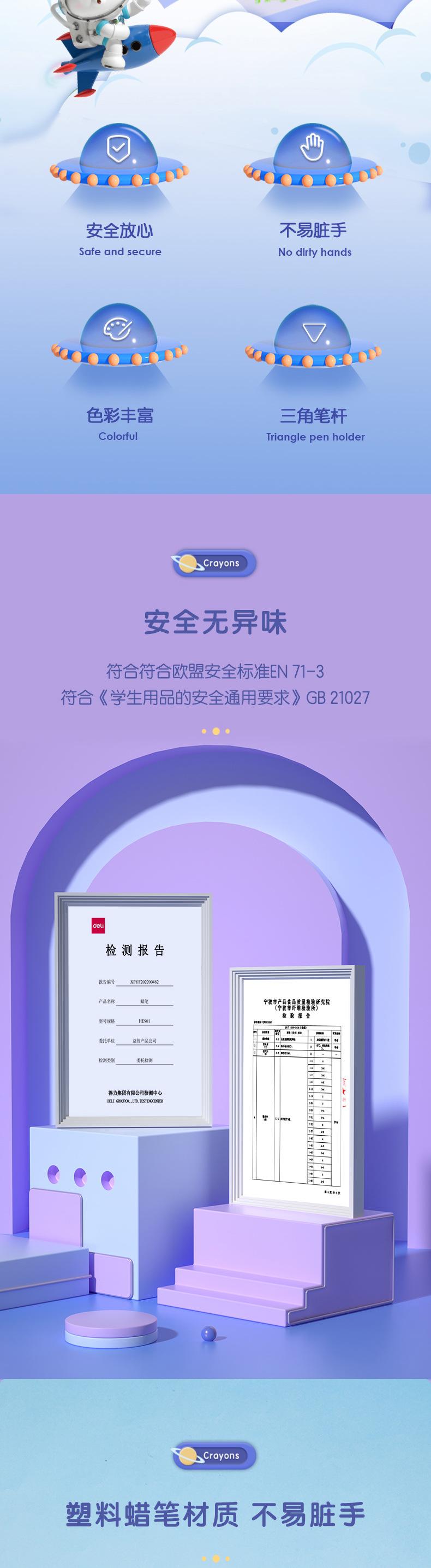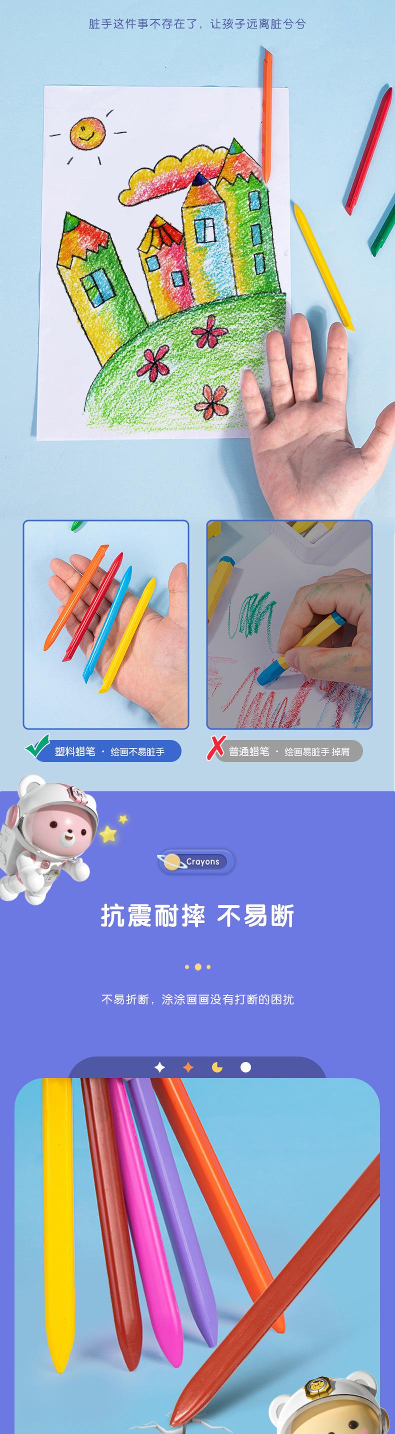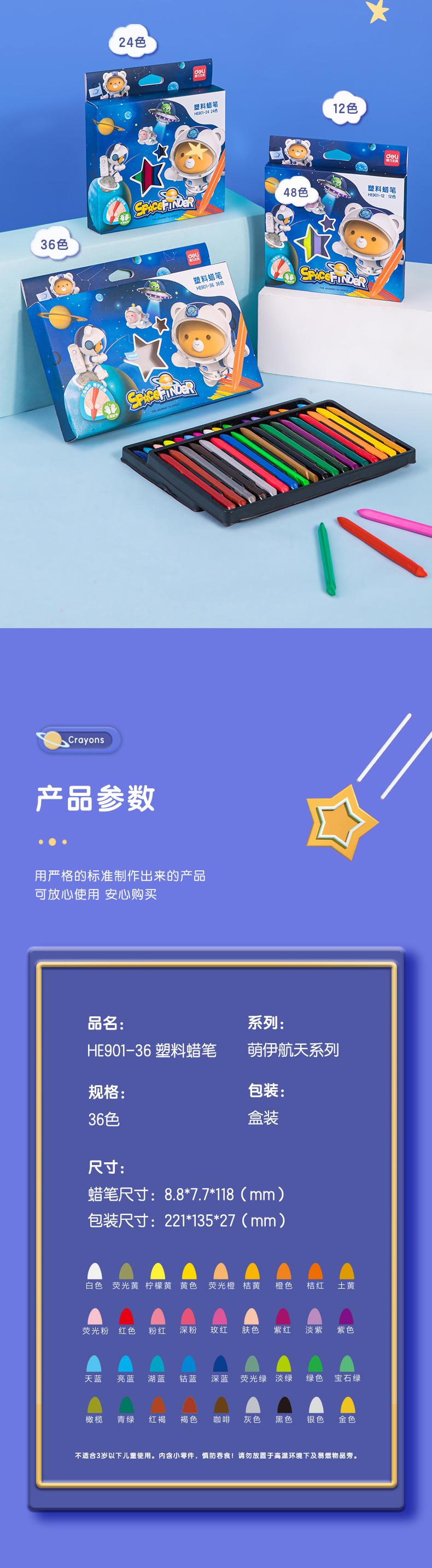 Crayón de plástico triangular fino en caja de color Deli HE901, bolígrafo de grafiti para niños, crayón artístico para pintar, no ensuciar las manos