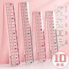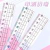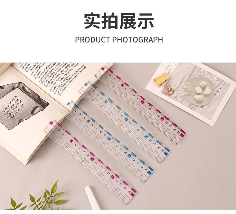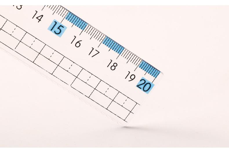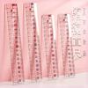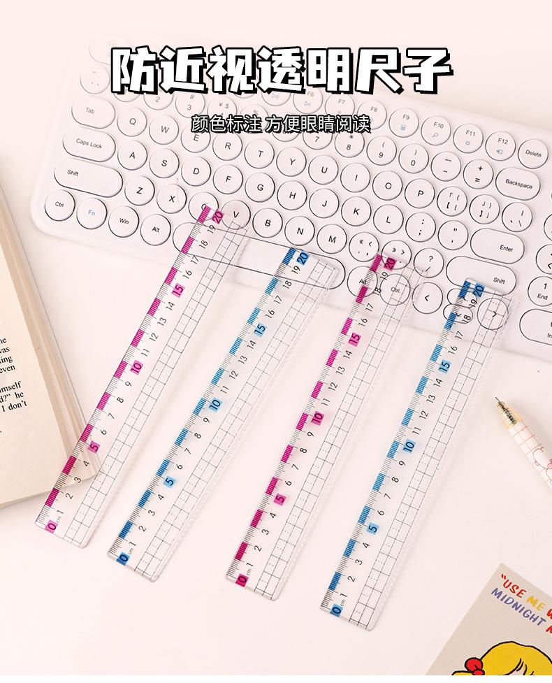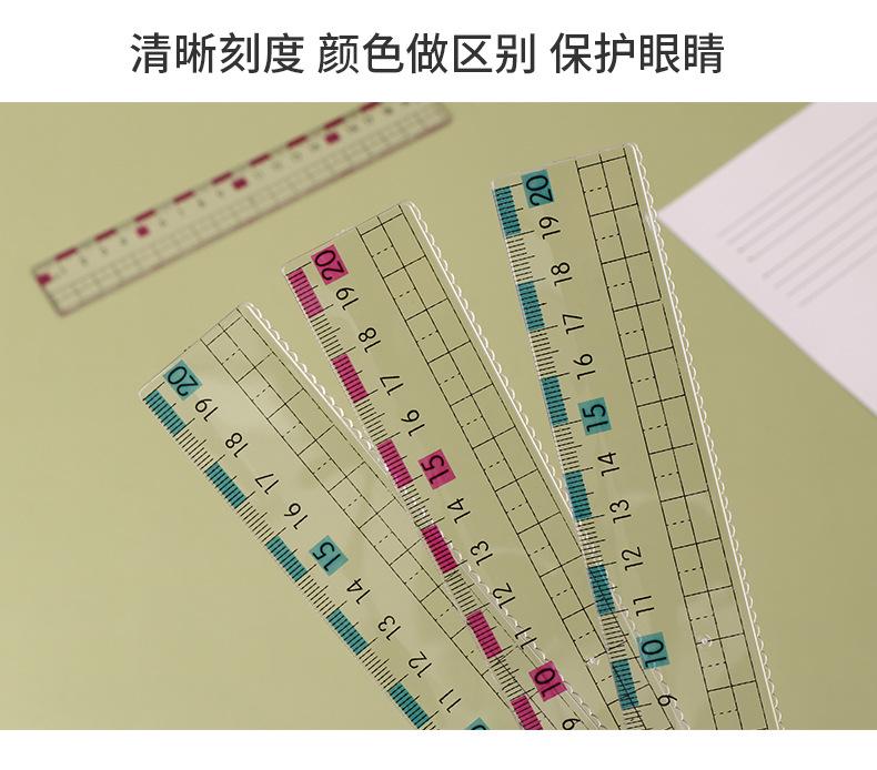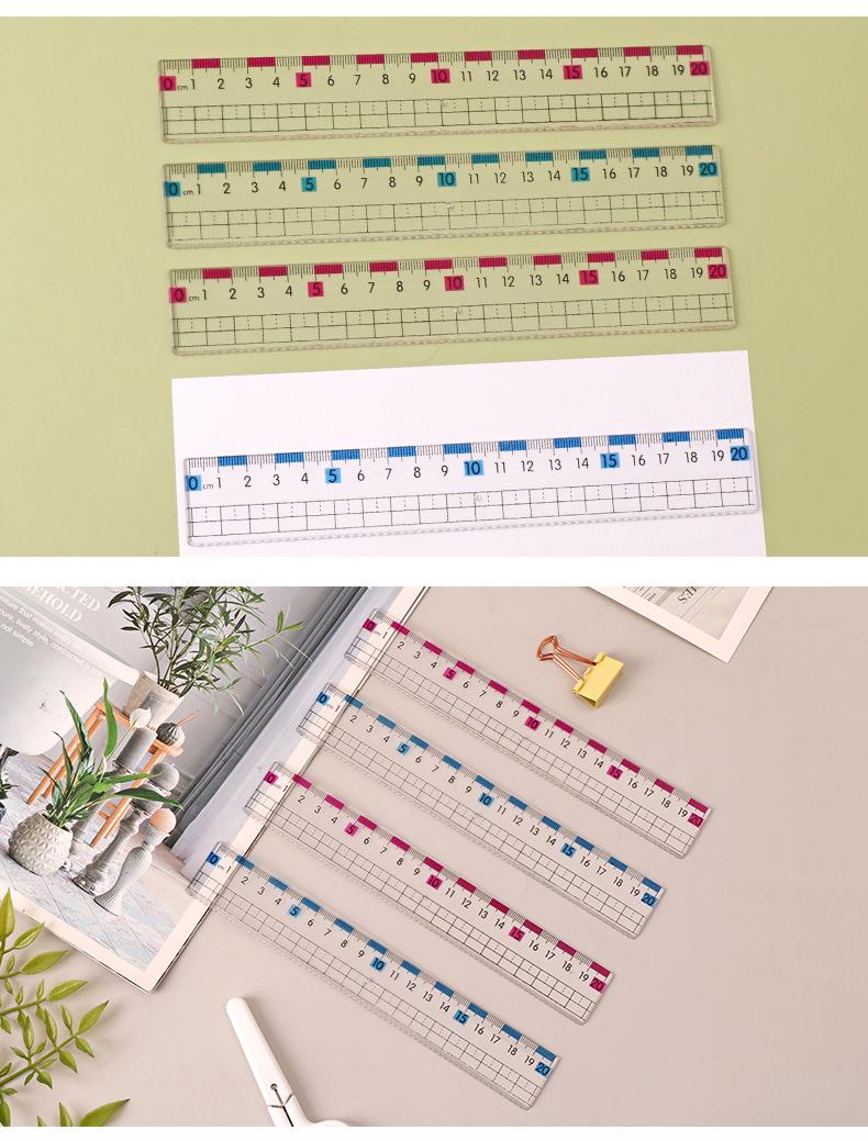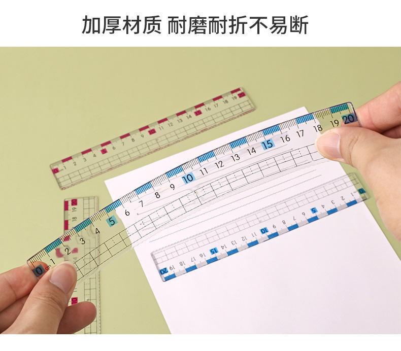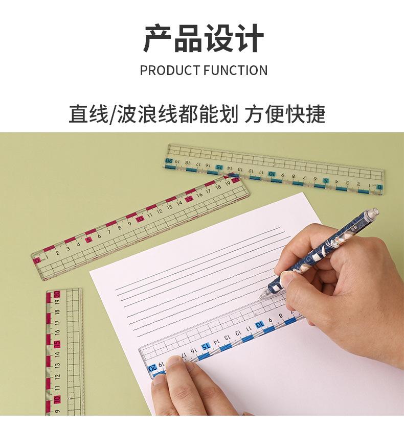 Los estudiantes usan una regla antimiopía con una escala de dibujo de medición de prueba transparente de línea ondulada, una regla multifuncional resistente al desgaste