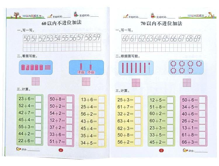 Conexión en la Primera Infancia 5-10-20-50-100 Suma y Resta Pinyin Chino Libro de Ejercicios de Matemáticas Número Carácter Chino Trazado de Pinyin