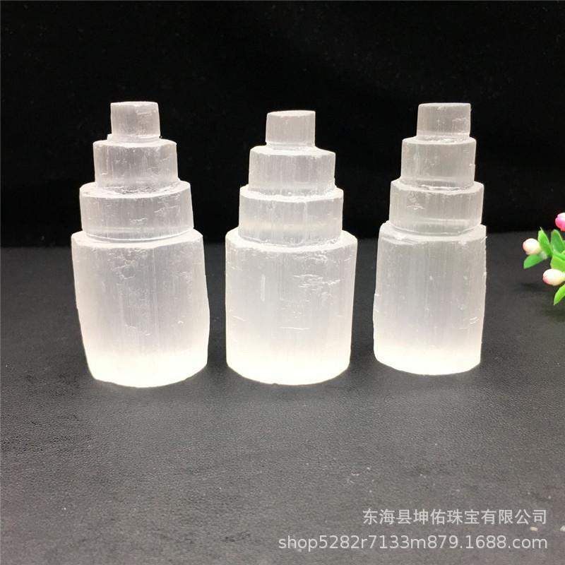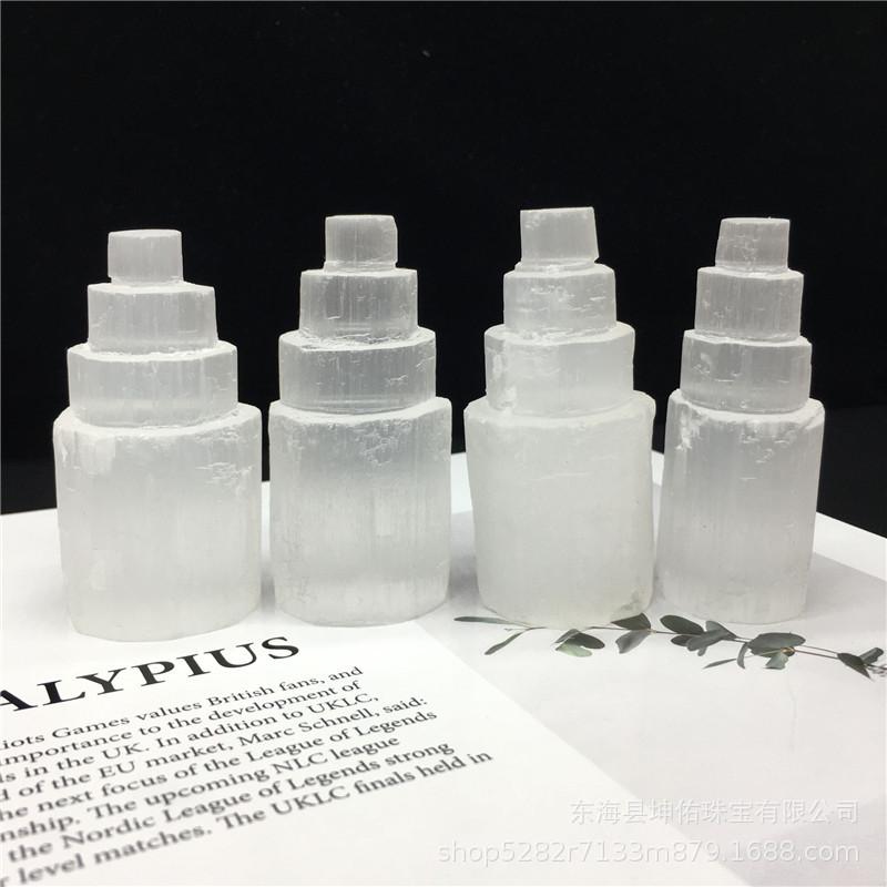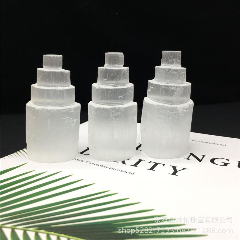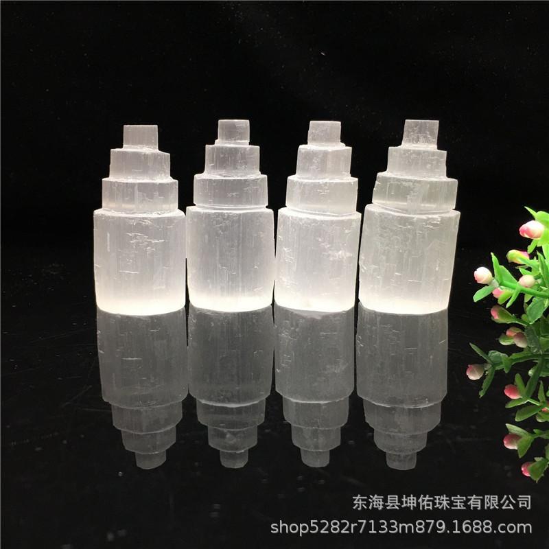 Torre de yeso blanco natural, torre de cristal de sal yahi, torre de yeso transparente, torre de cuarzo mineral, artesanías al por mayor