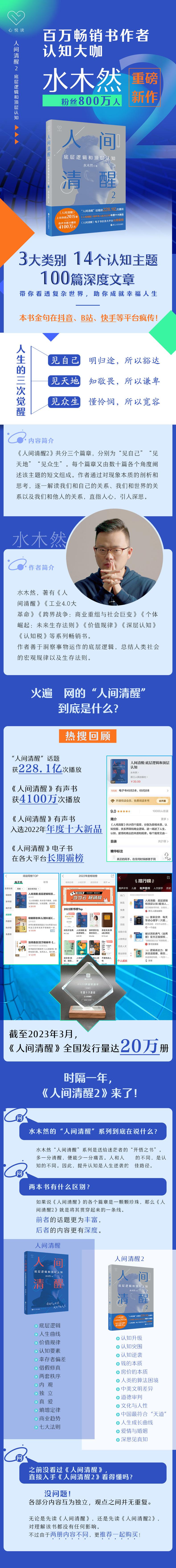 Este libro está dividido en tres capítulos, a saber, "Vete a ti mismo", "Ve el mundo" y "Ve a todos los seres vivos". Cada capítulo consta de docenas de ensayos cortos que explican el tema desde diferentes ángulos. El autor analiza y reflexiona sobre la esencia de los fenómenos, interpreta nuestra relación con nosotros mismos, el mundo y los demás uno por uno, y toca los corazones de las personas y las hace pensar profundamente. La serie "Despertar en el mundo" de Shui Muran tiene como objetivo ayudar a los lectores a comprender la lógica subyacente y la verdadera naturaleza de las cosas, lograr el despertar cognitivo y los avances, y promover el crecimiento personal y los saltos.