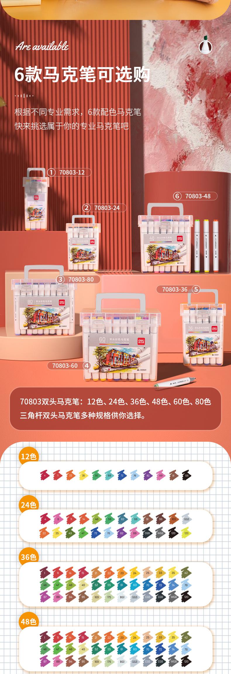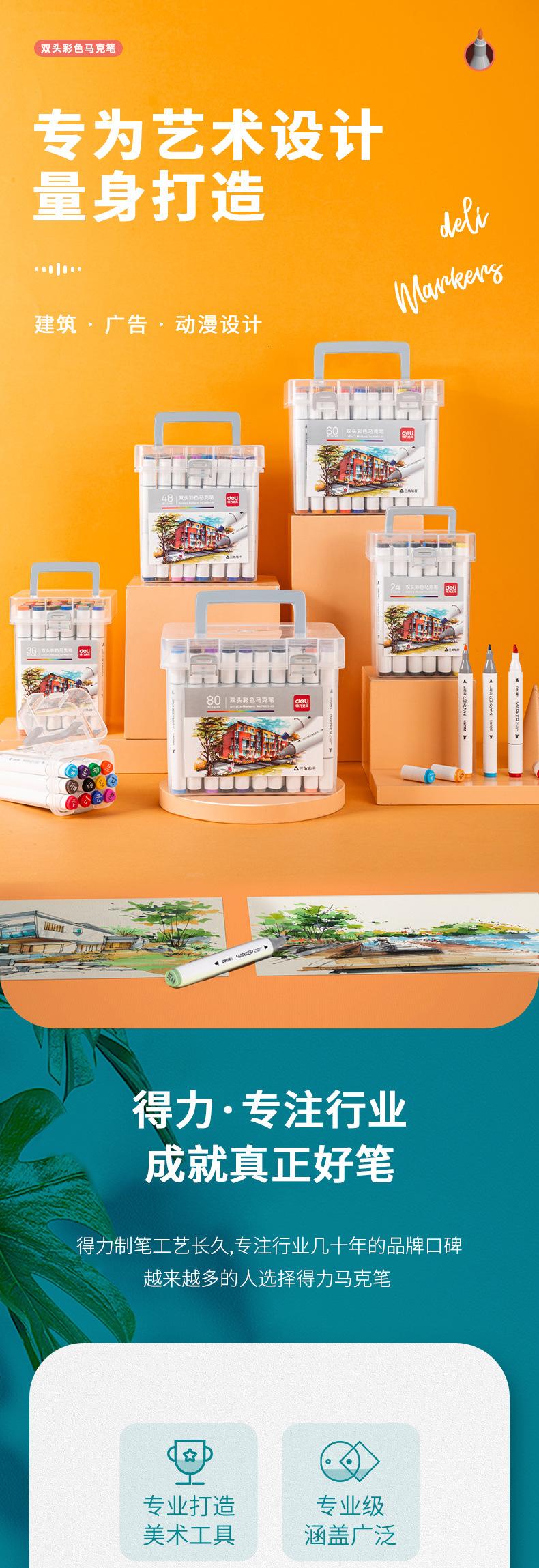 Deli 70803 marcador de doble cabeza, bolígrafo de 24 colores, bolígrafo de 36 colores para pintar para niños, bolígrafo de grafiti, bolígrafo de acuarela, venta al por mayor