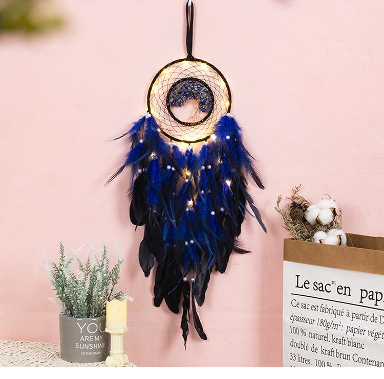 Atrapasueños de árbol de la vida retro transfronterizo, de un solo aro, con adornos de plumas, decoración para el hogar, para colgar en la pared, atrapasueños tejido