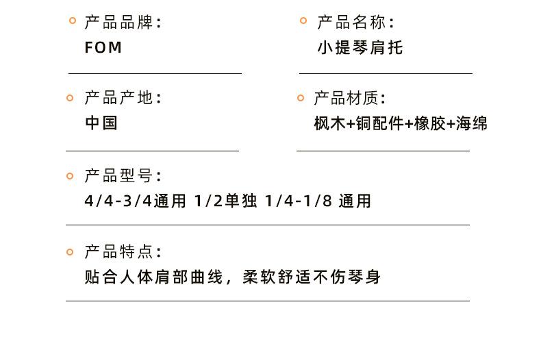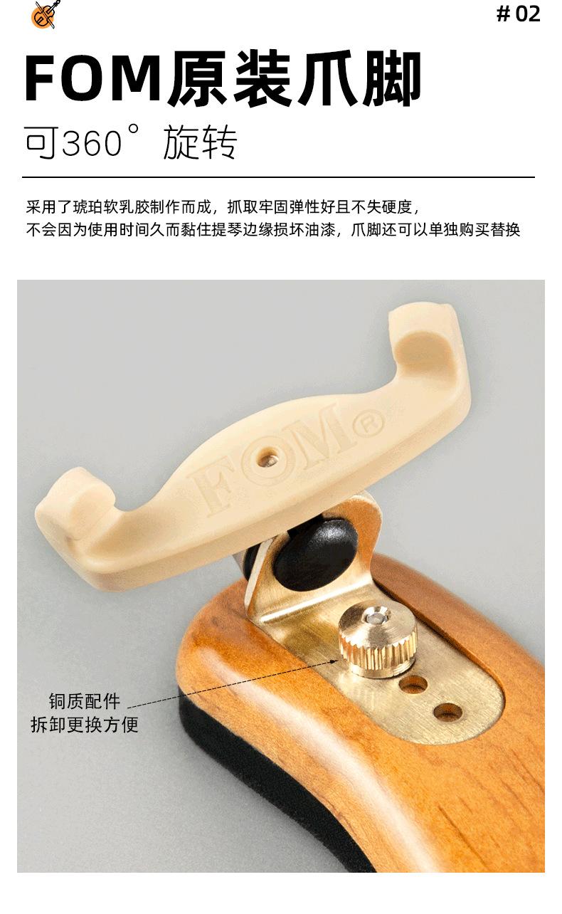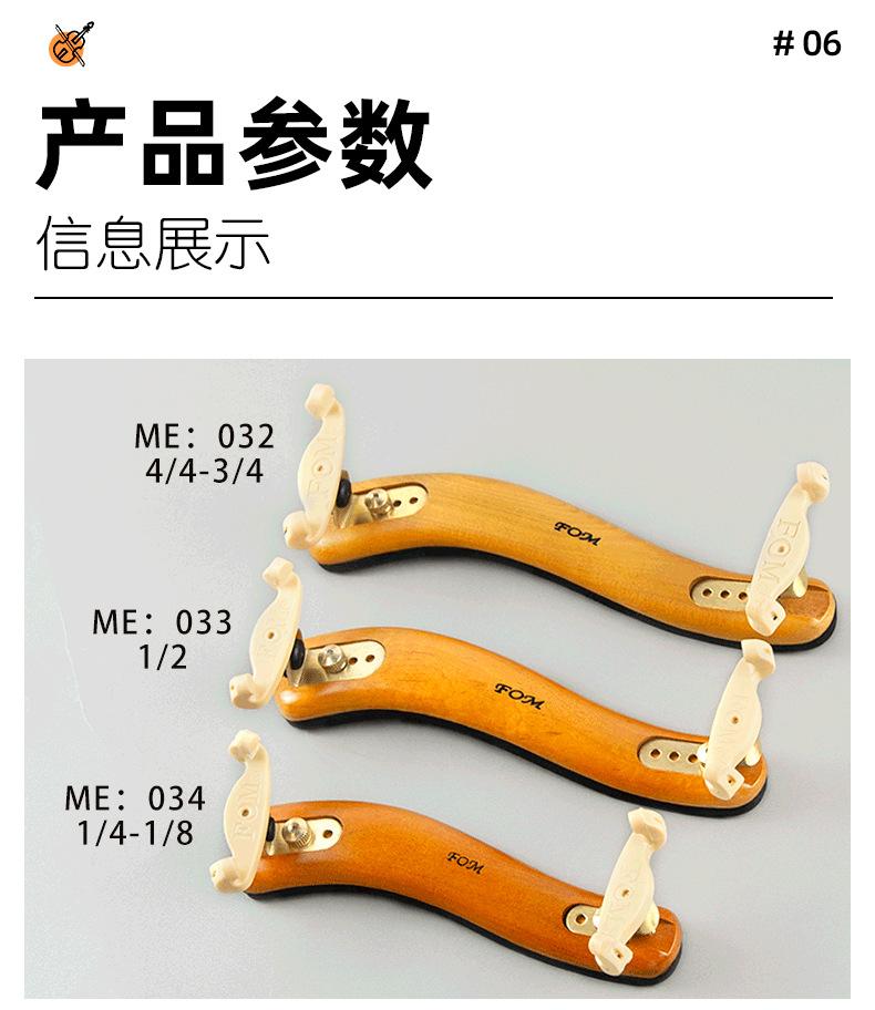 Hombrera para violín FOM 4/4 3/4 1/2 1/4 1/8 de madera ajustable para violín