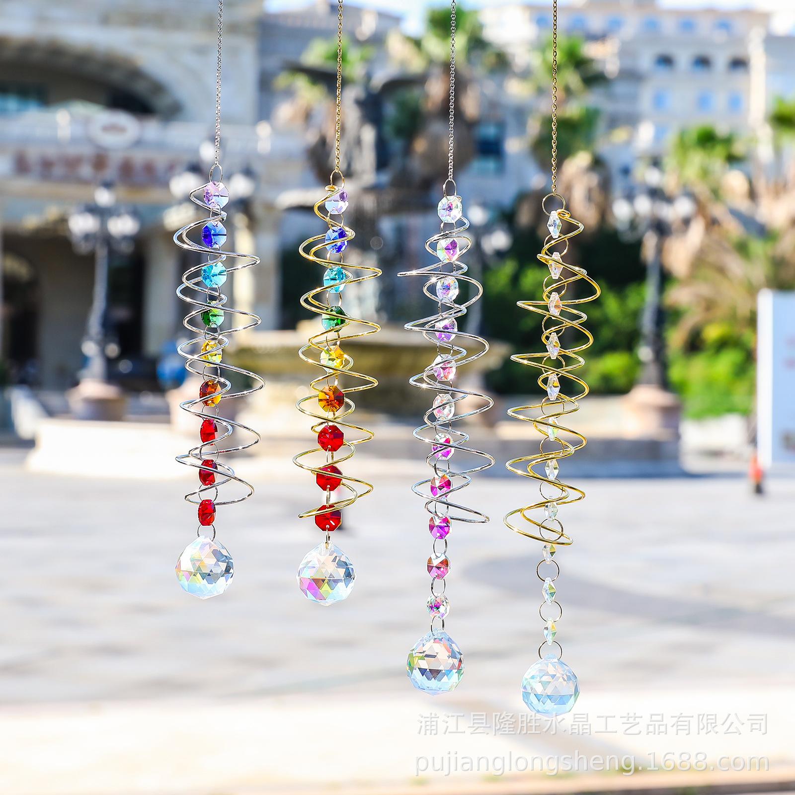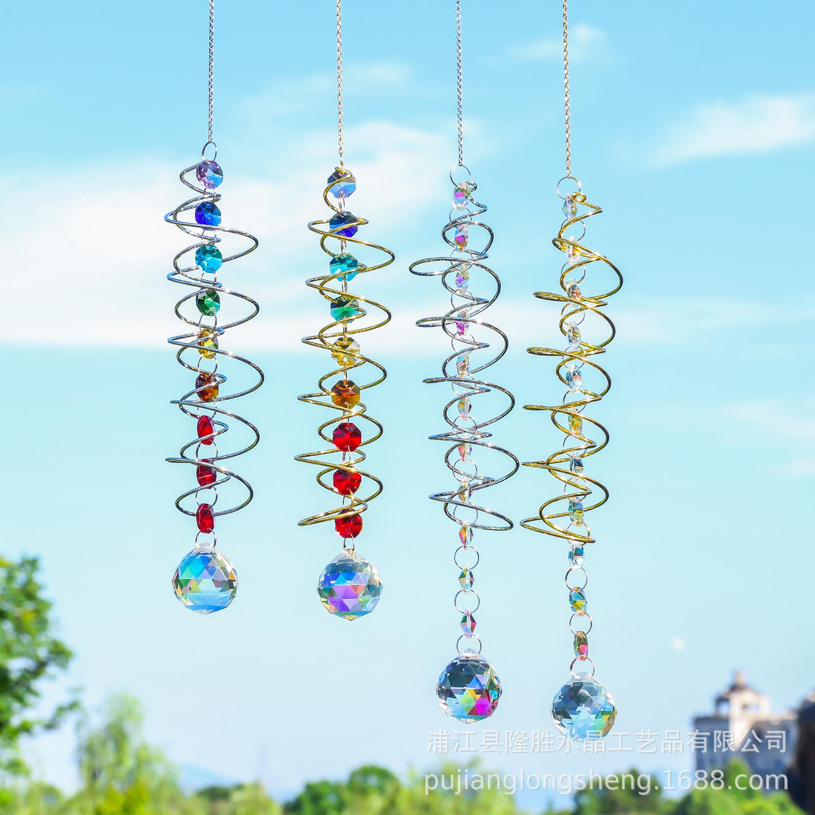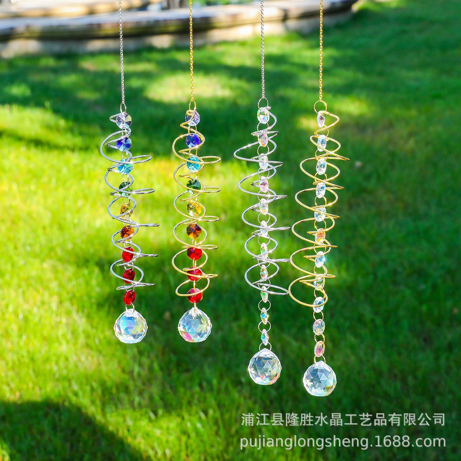 Colgante de cristal arcoíris con decoración de jardín en espiral, disponible en eBay y Amazon. Atrapa vientos giratorio.