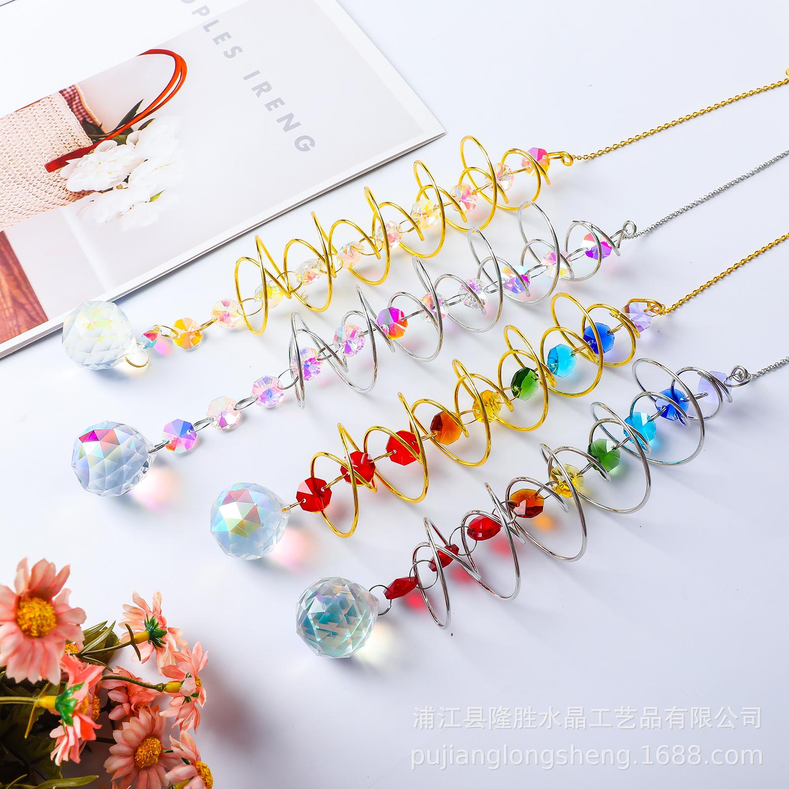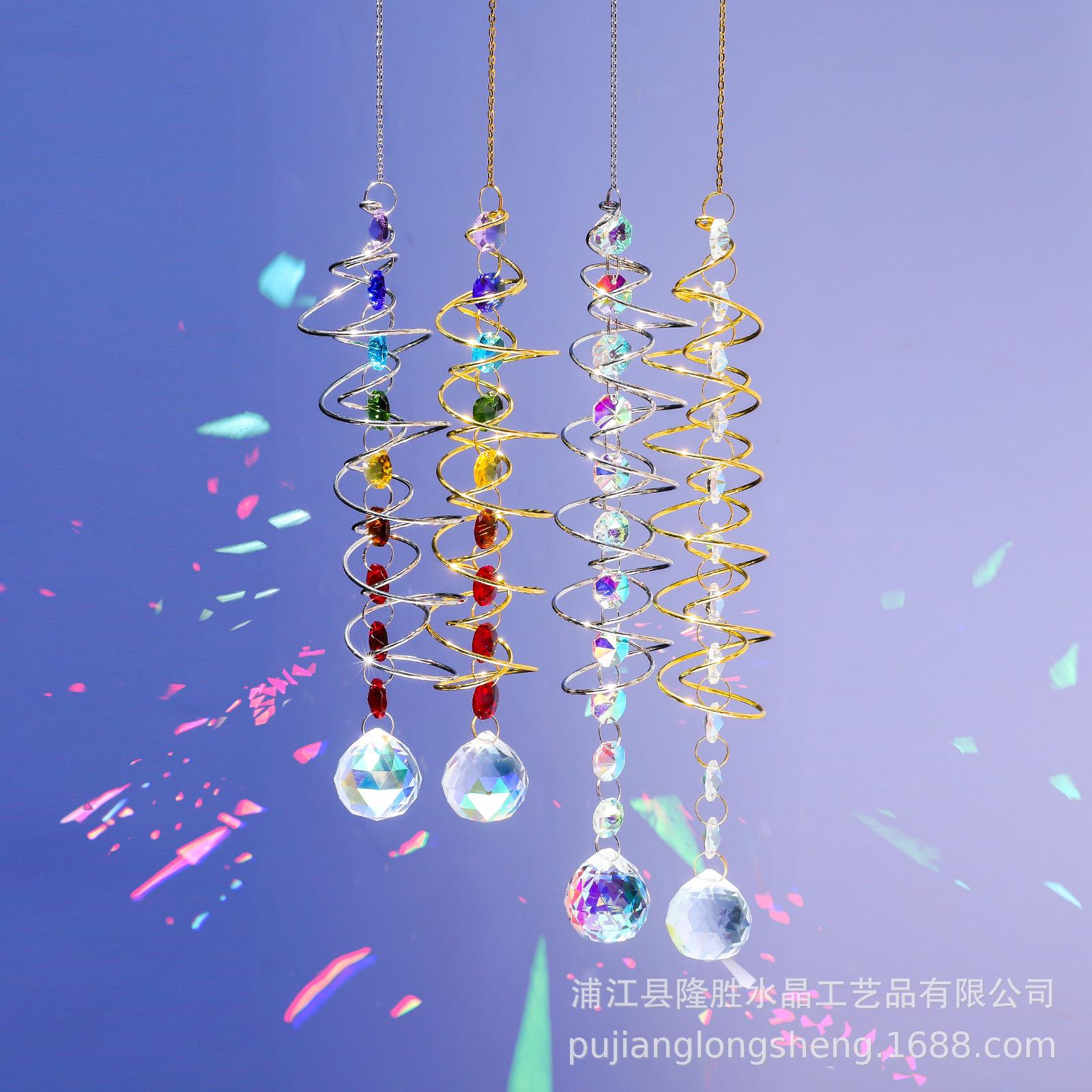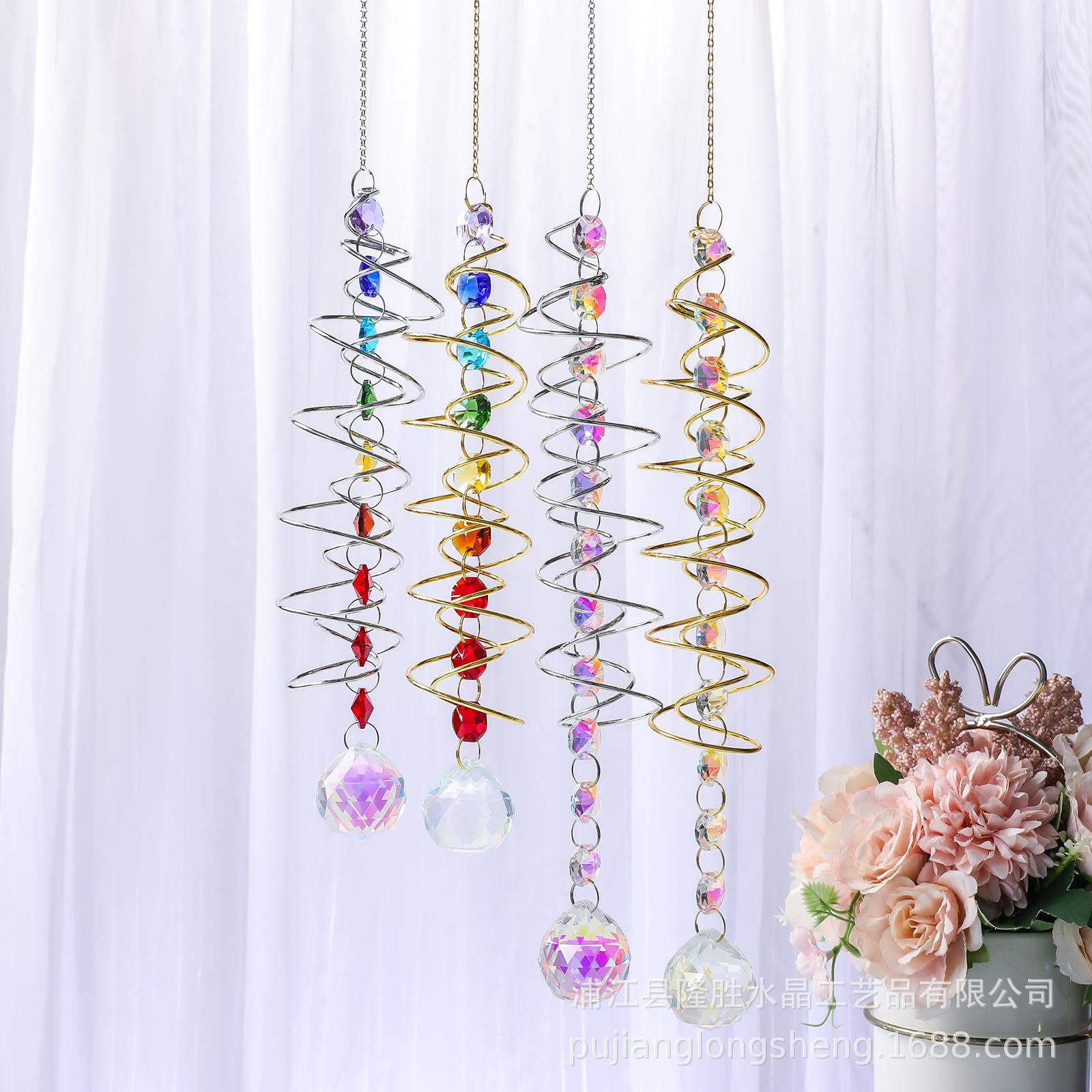 Colgante de cristal arcoíris con decoración de jardín en espiral, disponible en eBay y Amazon. Atrapa vientos giratorio.
