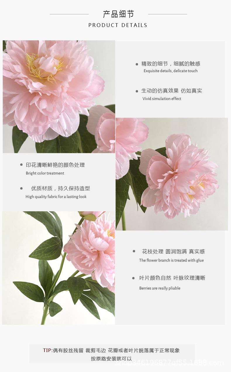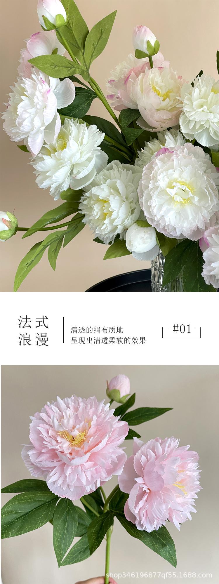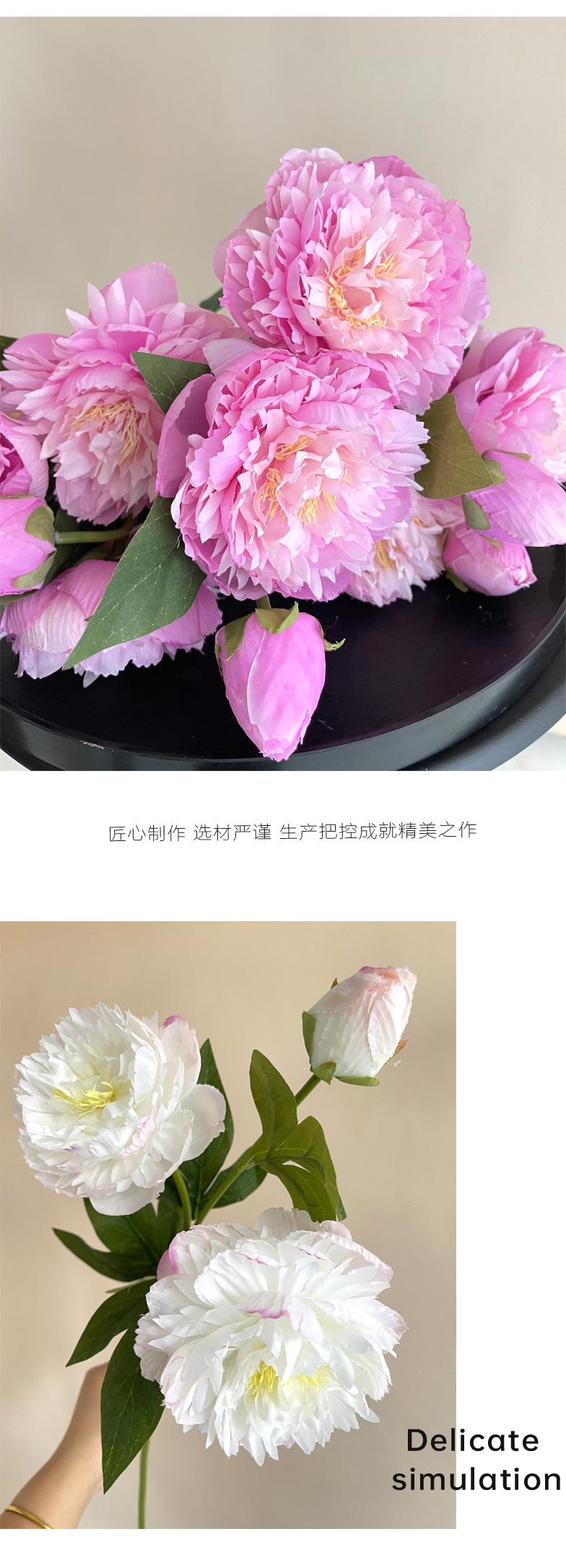 Flor artificial de estilo europeo, peonía de 3 cabezas, decoración del hogar, ramo individual, accesorios de fotografía, flor falsa, flor de boda