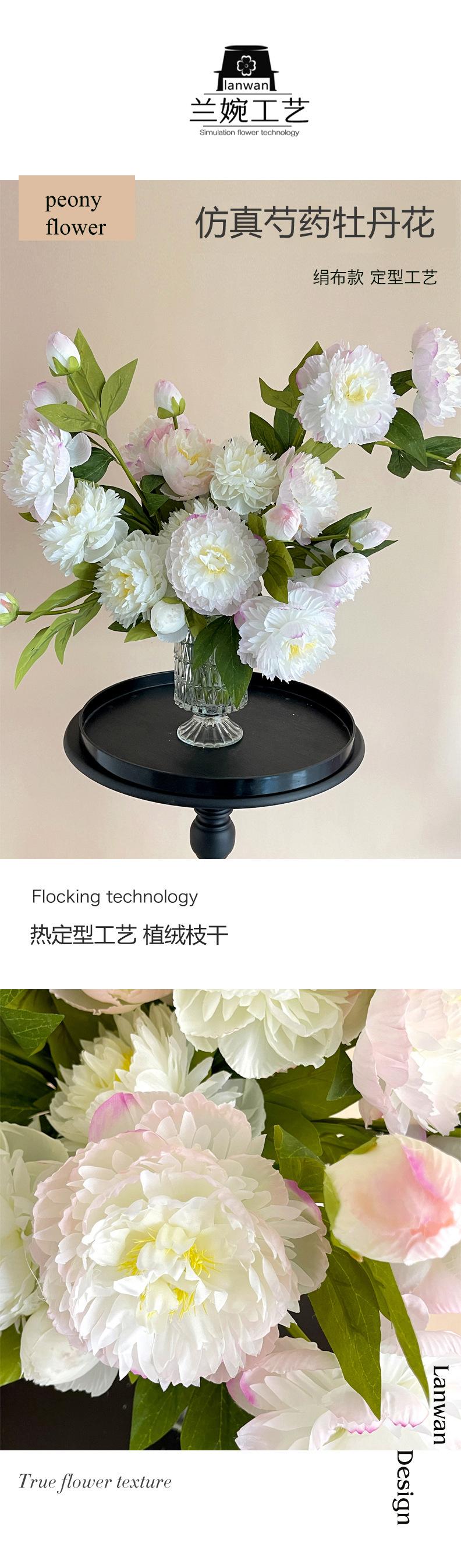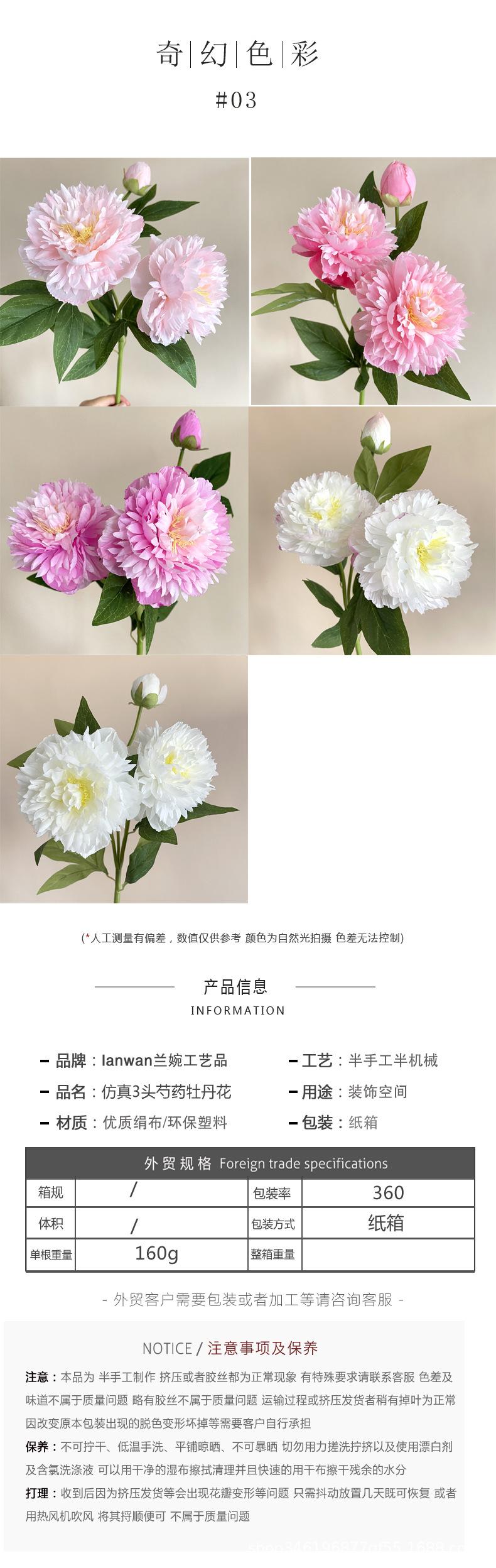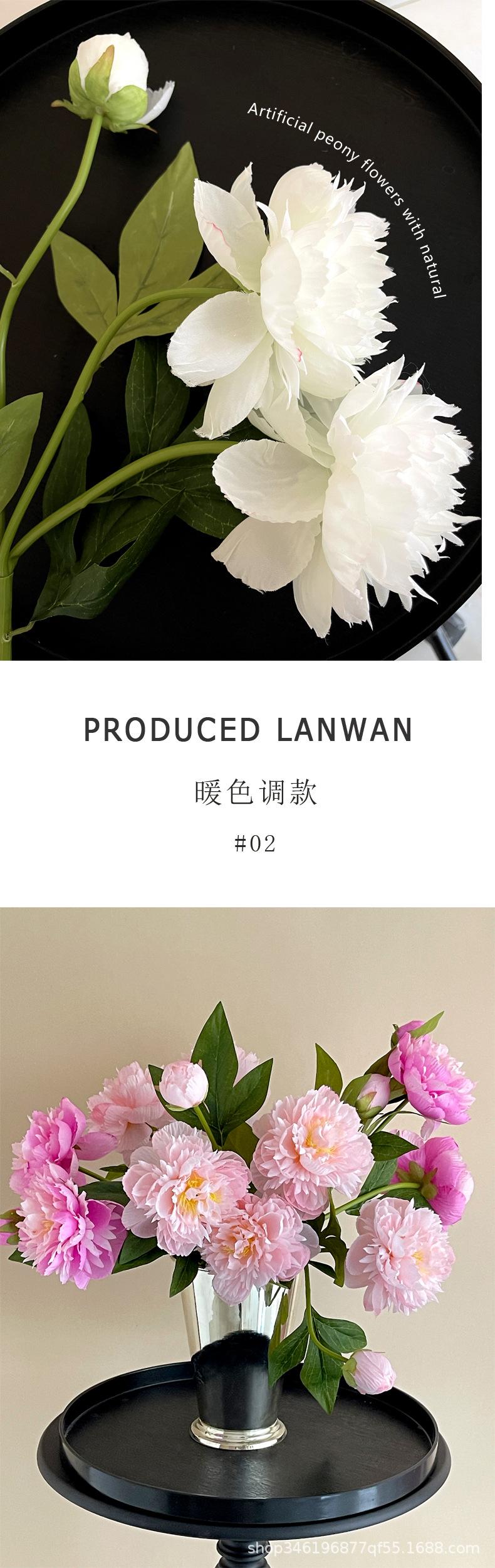 Flor artificial de estilo europeo, peonía de 3 cabezas, decoración del hogar, ramo individual, accesorios de fotografía, flor falsa, flor de boda