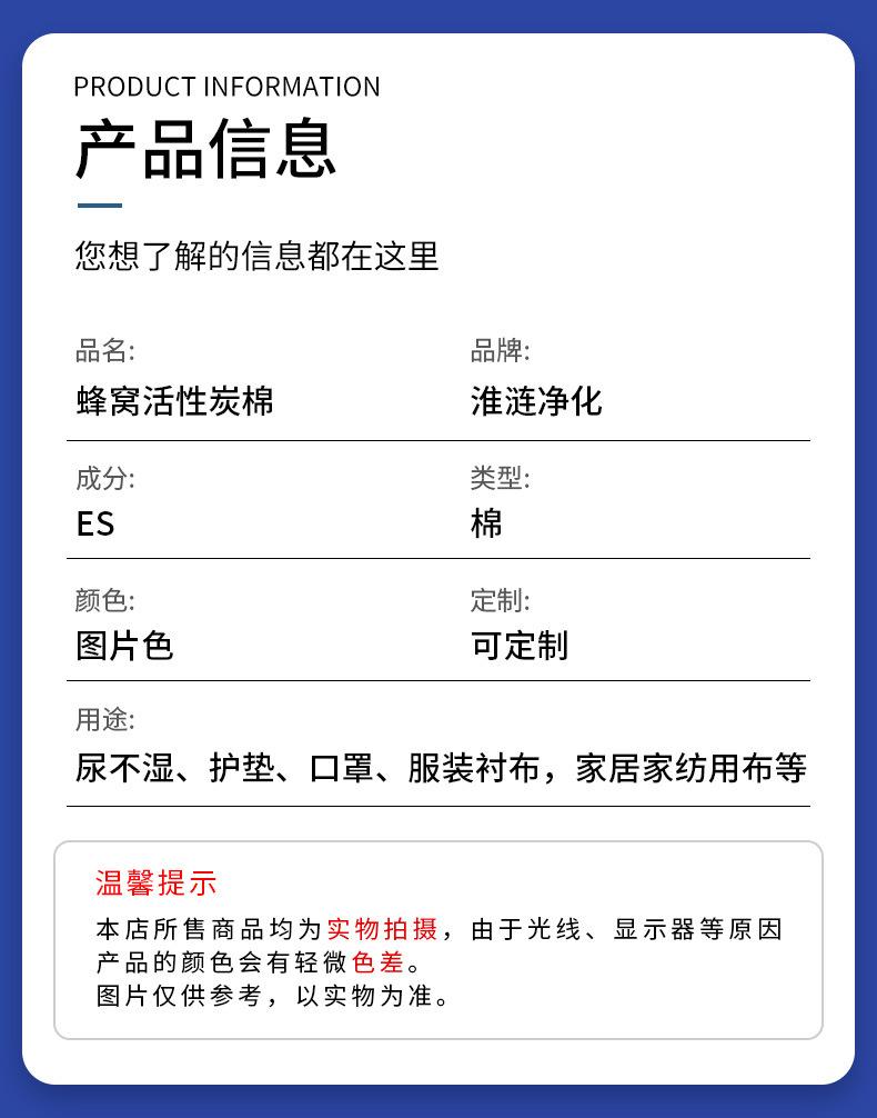 Filtro de carbón activado de algodón, filtro de aire de efecto primario, esponja de pantalla, espuma de poliuretano negra, panal de abeja, carbón activado de algodón.