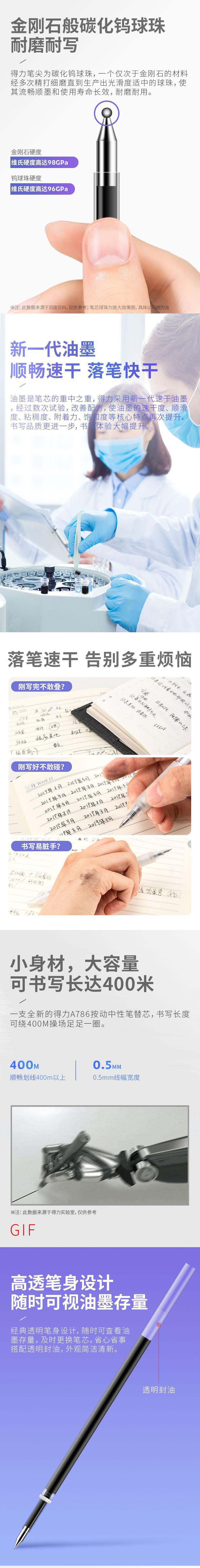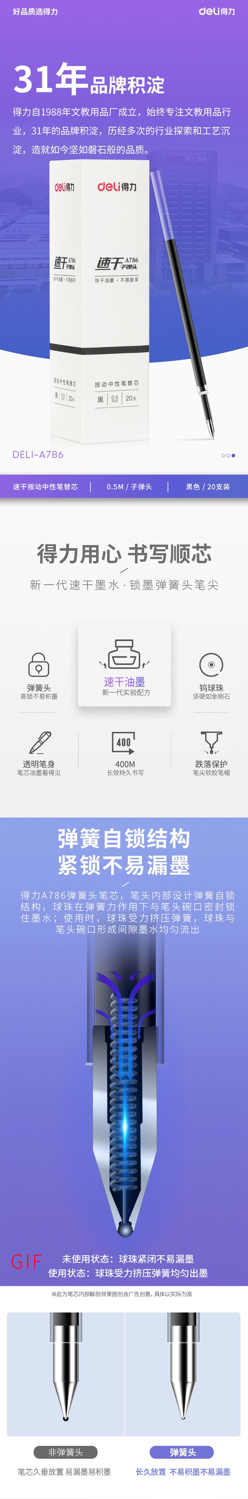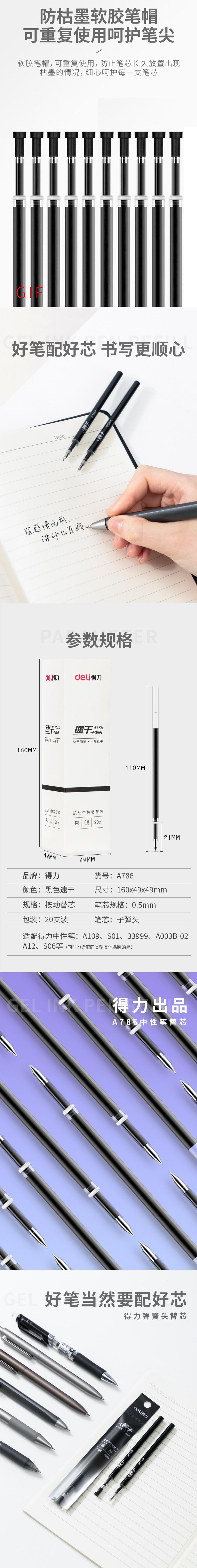 Deli A786 Recarga de Pluma Neutra de Secado Rápido Punta Bala Presión Negro Recarga de Pluma de Agua Estudiante Recarga de Gran Capacidad Simple