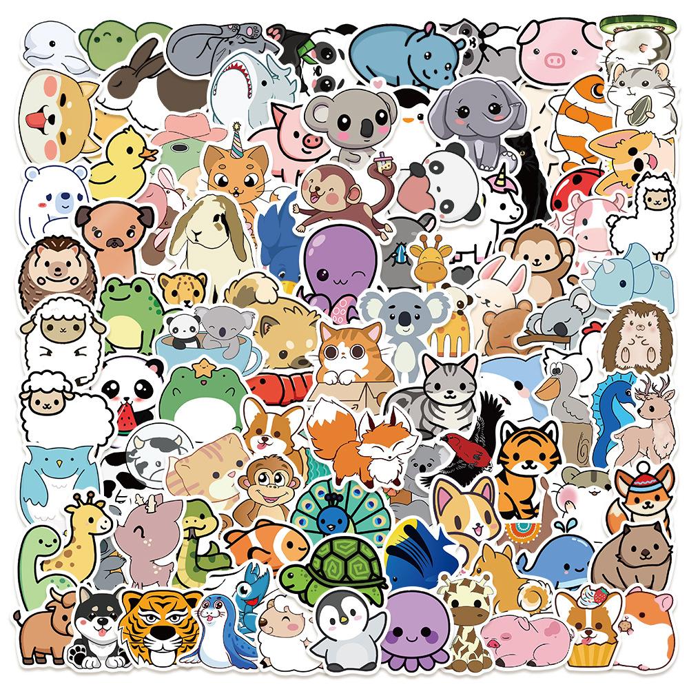 100 pegatinas de grafiti de animales pequeños con dibujos animados para equipaje, portátil, cuaderno, pegatinas decorativas impermeables