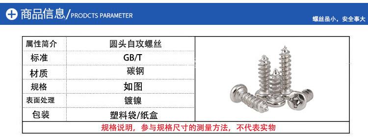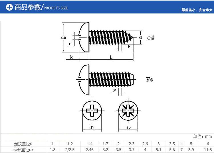 Tornillo autorroscante de cabeza redonda cruzada PA en miniatura Niquelado cabeza redonda cruz M1.0 M1.2 M1.4 M1.7 M2