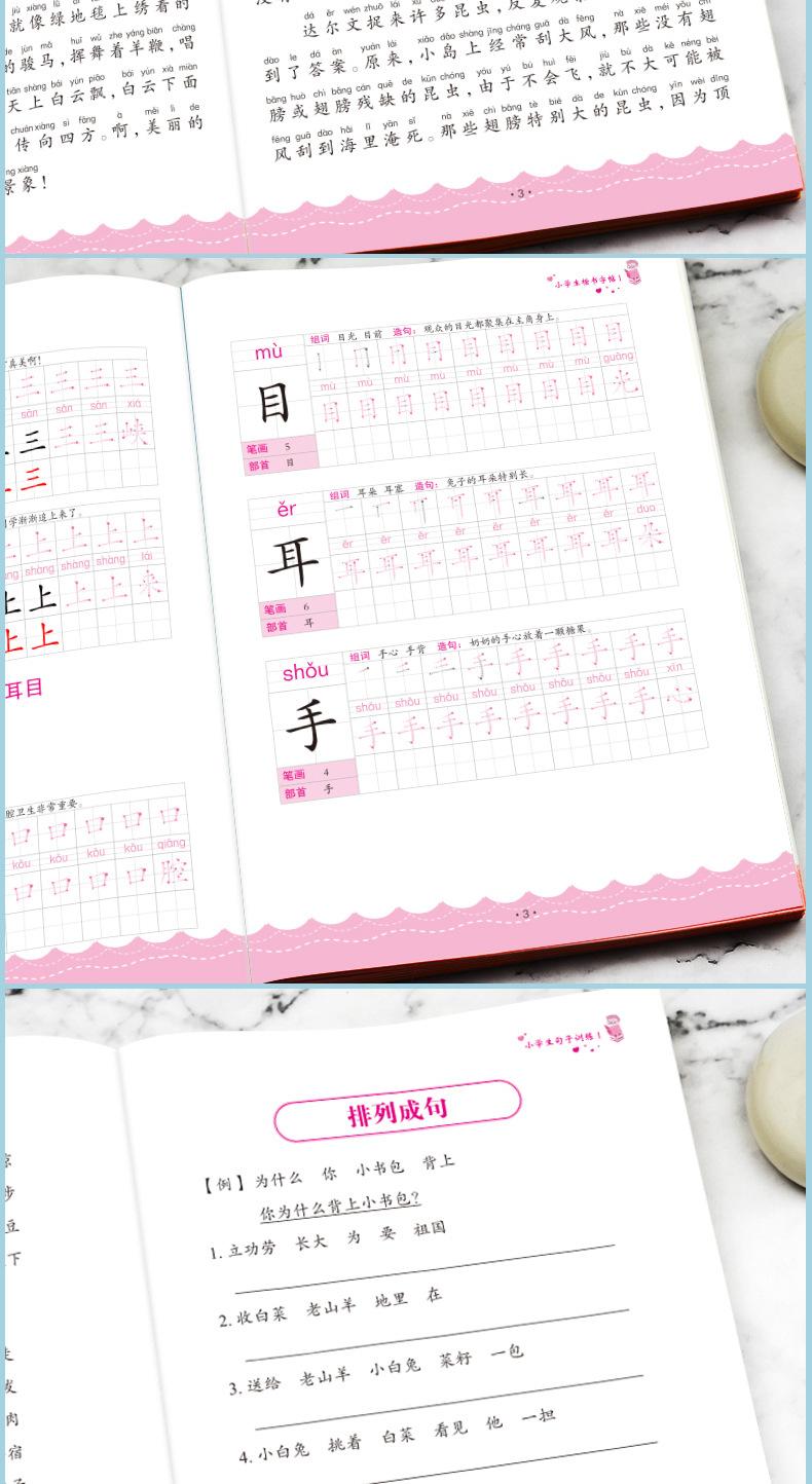 Libro de Caligrafía para Práctica Diaria de Oraciones de Lectura de Expertos en Conocimiento del Idioma Chino de Escuela Primaria de Primer Grado Diversión Cómic Especial