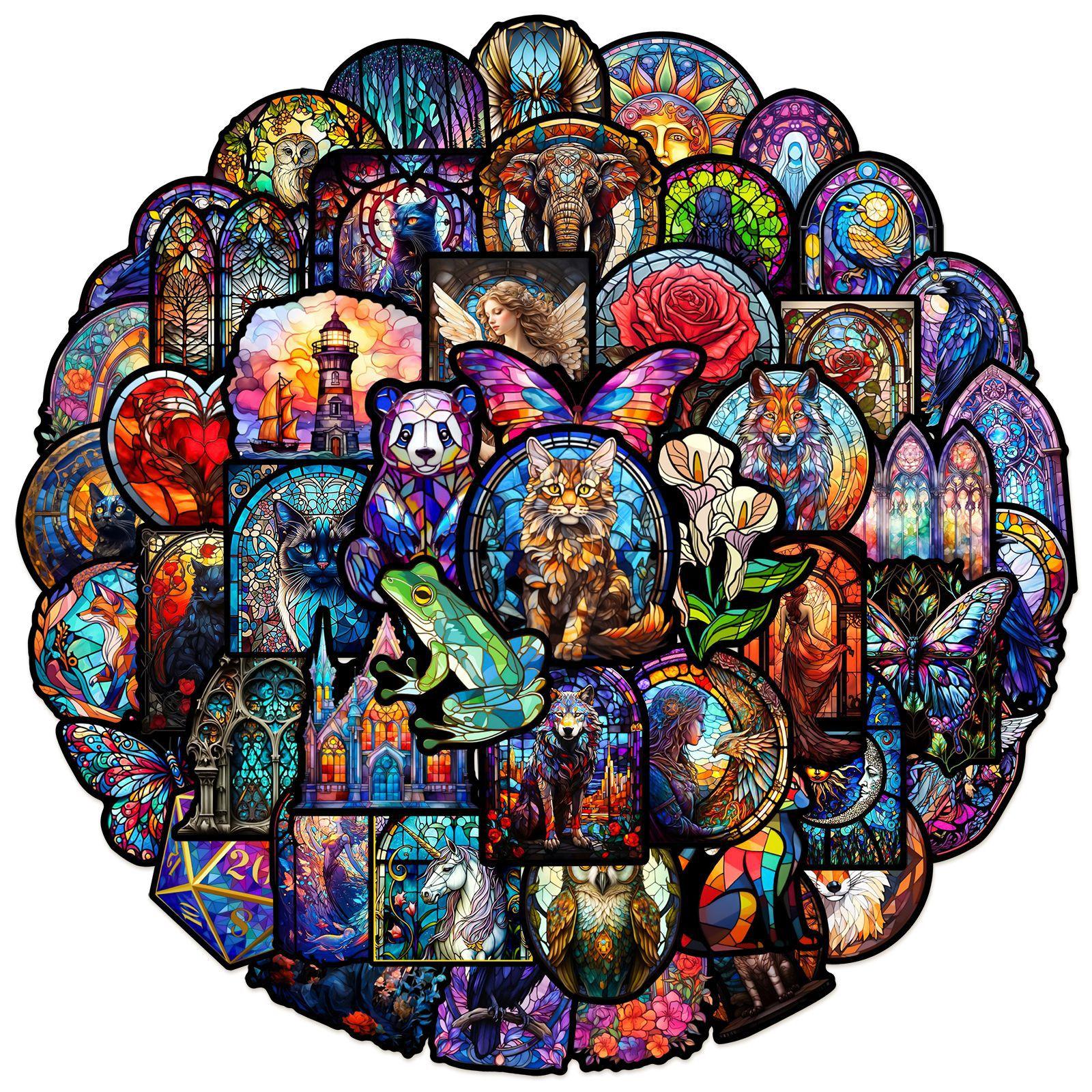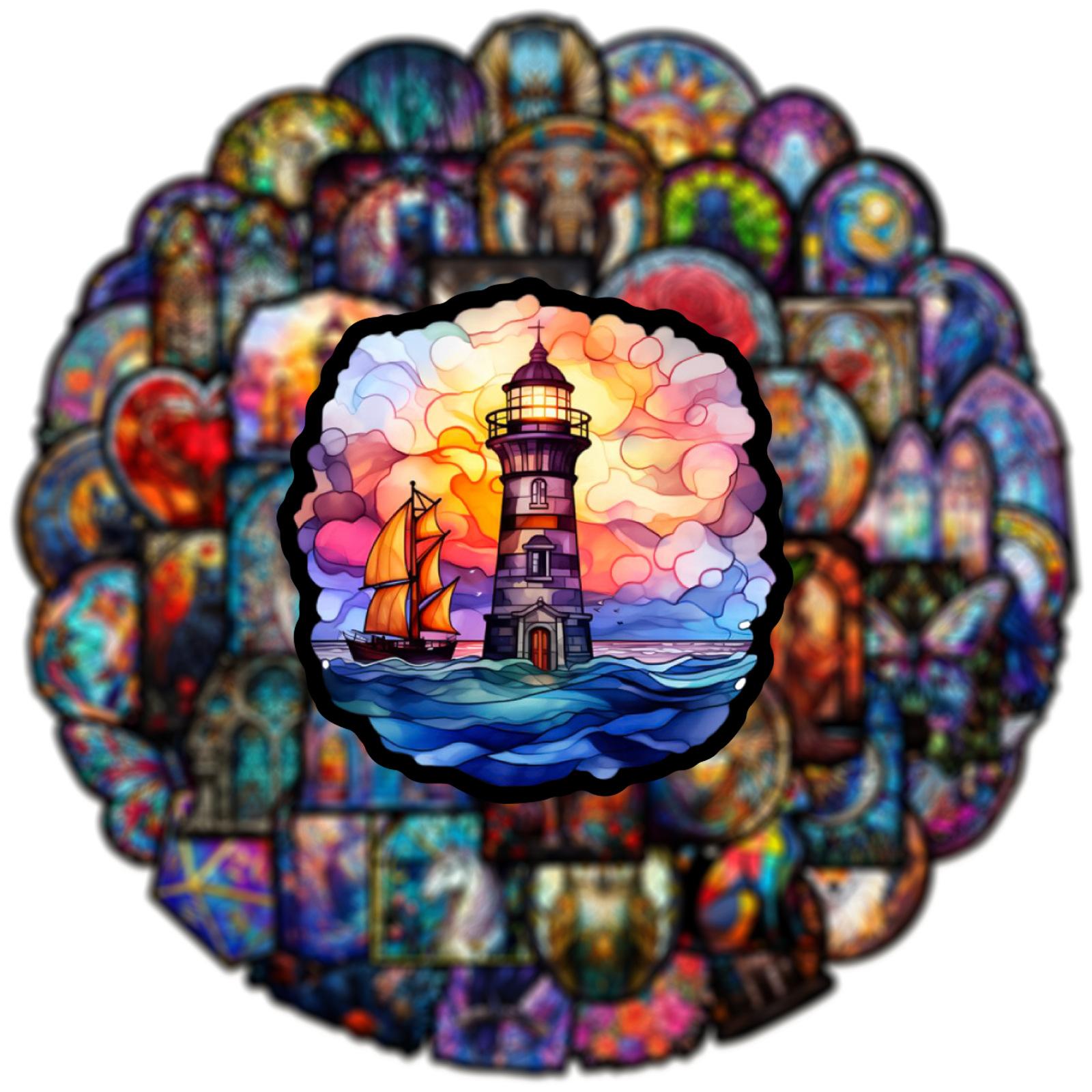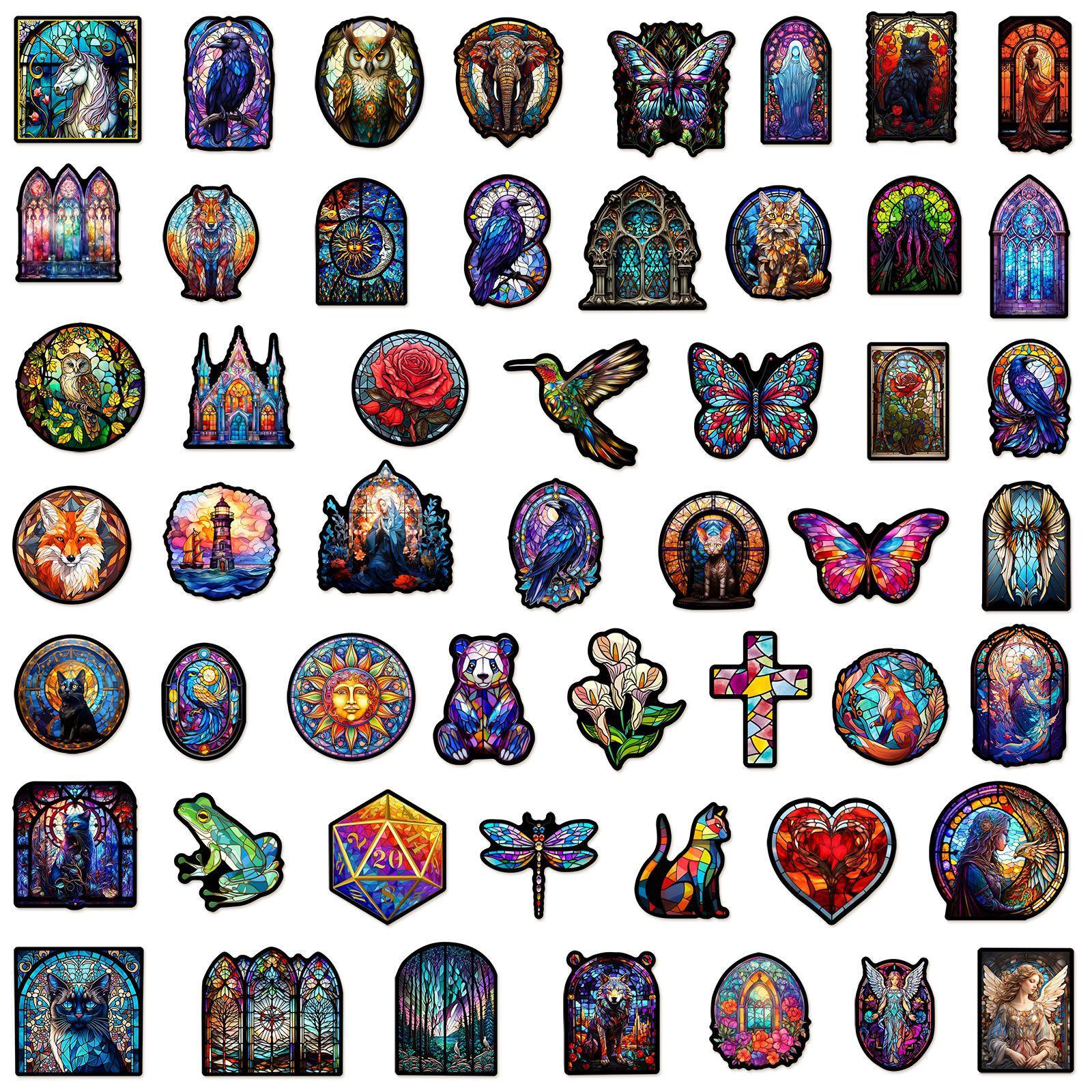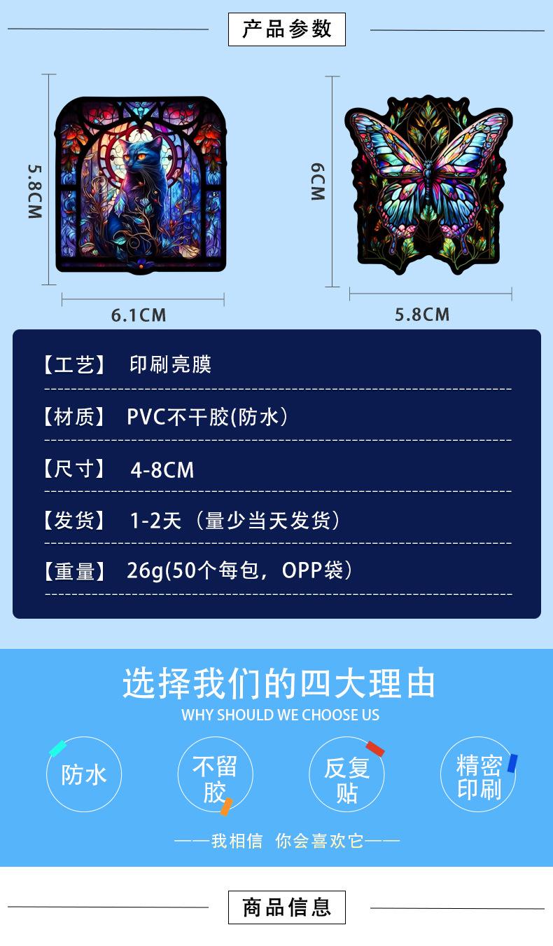 50 pegatinas de grafiti de estilo de vidrio colorido transfronterizo, nuevas, para taza de agua, maleta con ruedas para guitarra, pegatinas impermeables de PVC, venta al por mayor