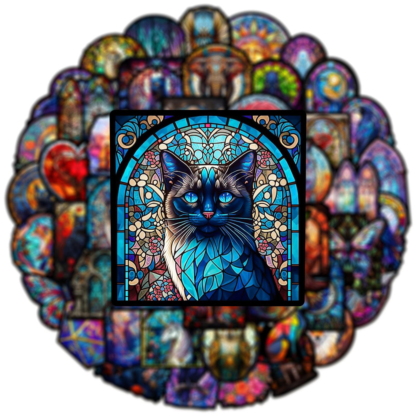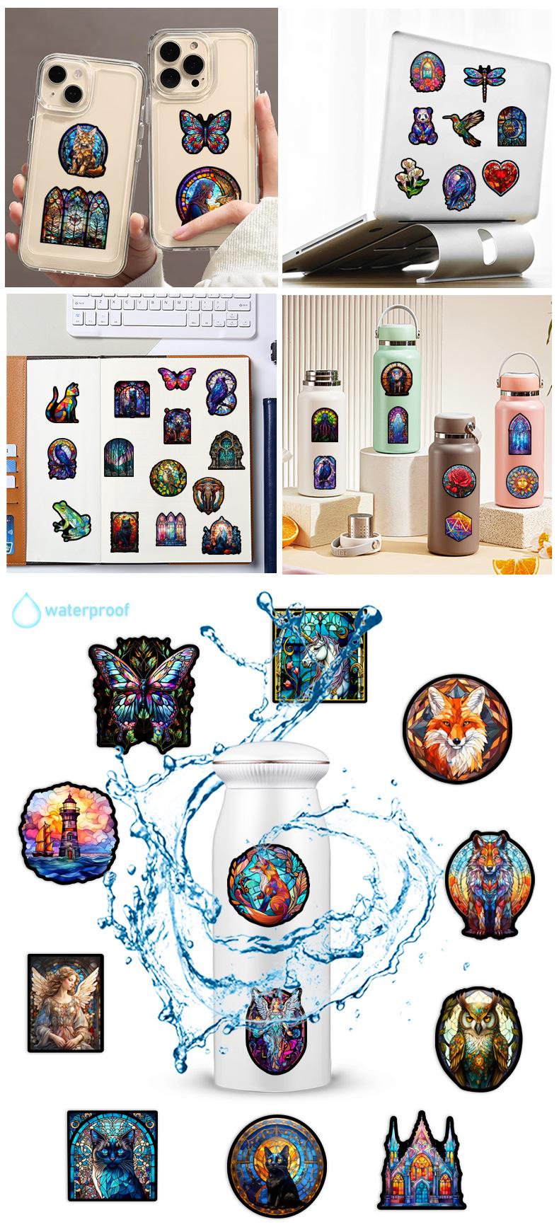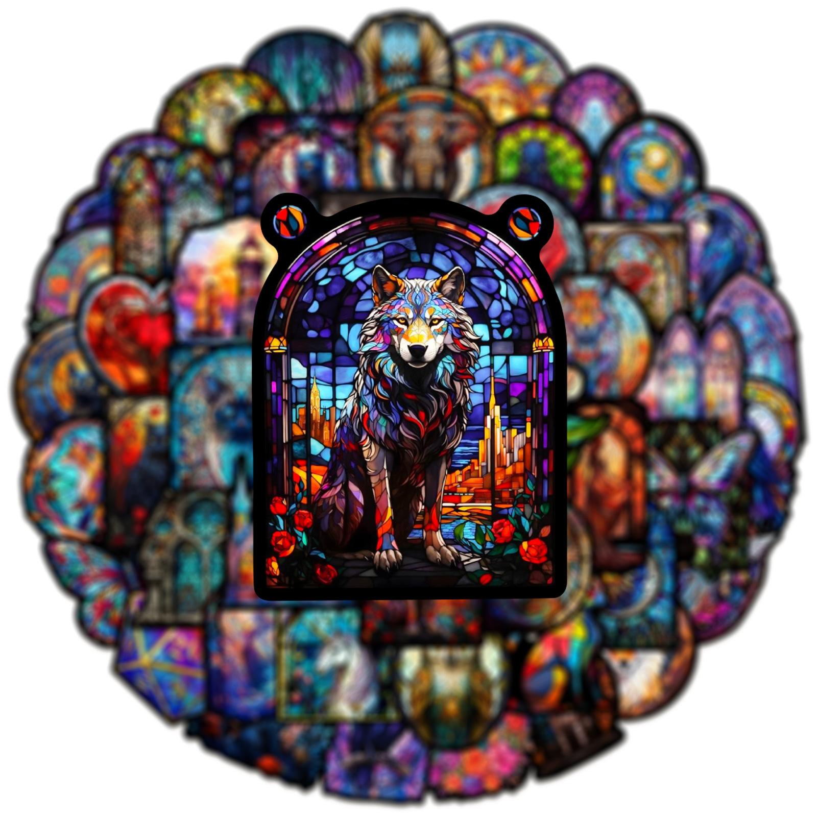 50 pegatinas de grafiti de estilo de vidrio colorido transfronterizo, nuevas, para taza de agua, maleta con ruedas para guitarra, pegatinas impermeables de PVC, venta al por mayor