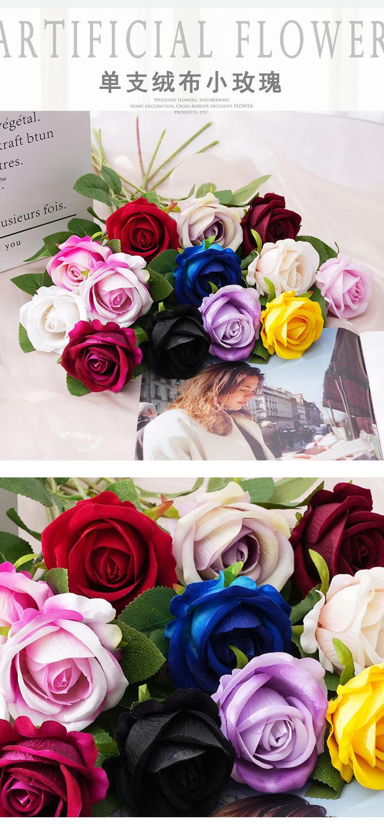 Rosa Pequeña de Terciopelo Simple Simulada Flor Falsa Flor de Piso para Boda Decoración de Salón de Bodas Arreglo Floral de Flor Artificial de Plástico