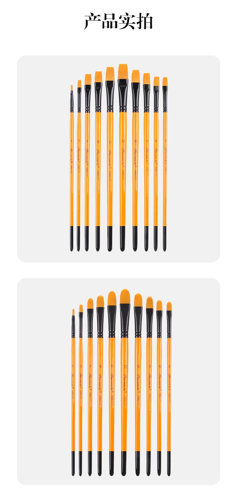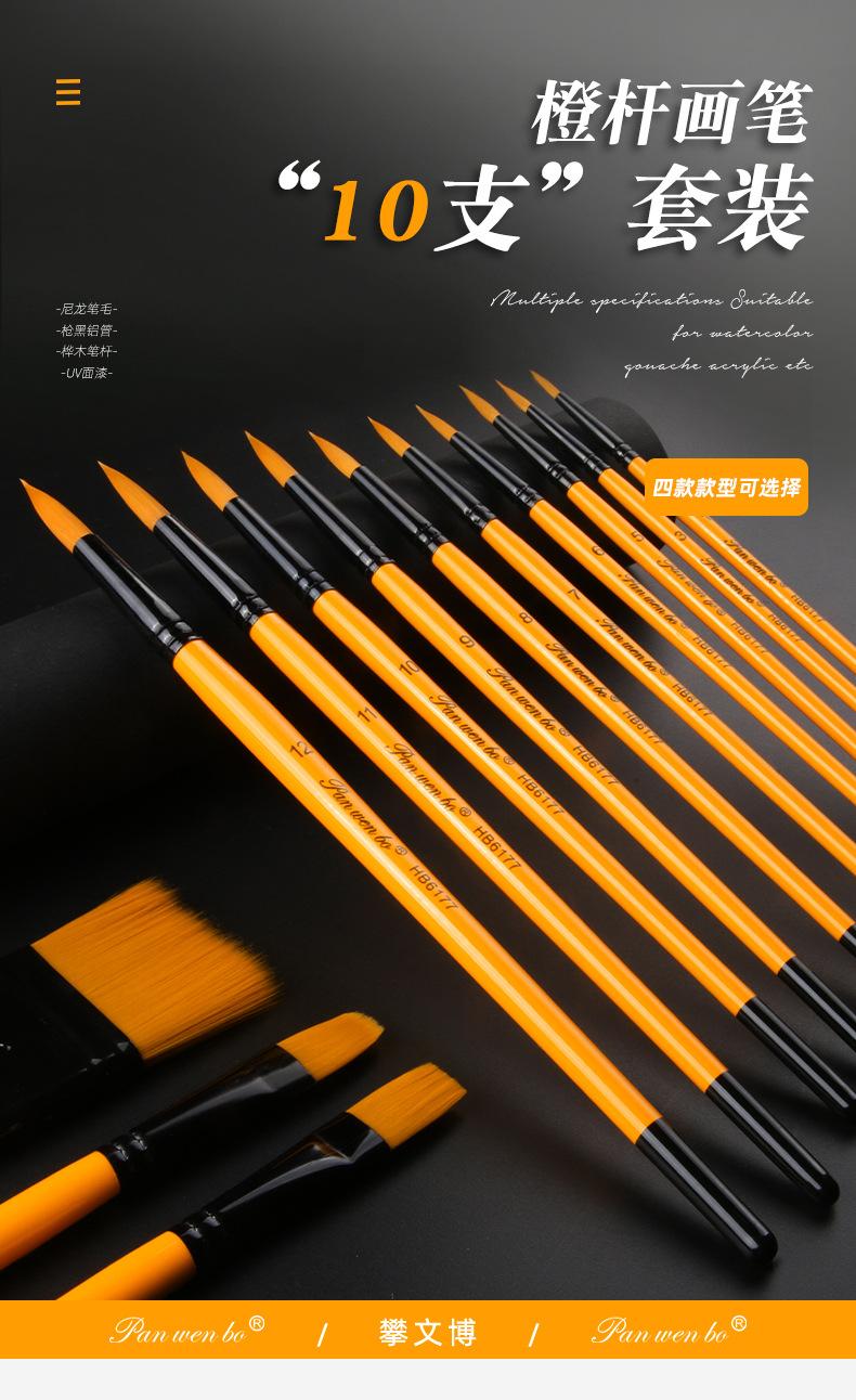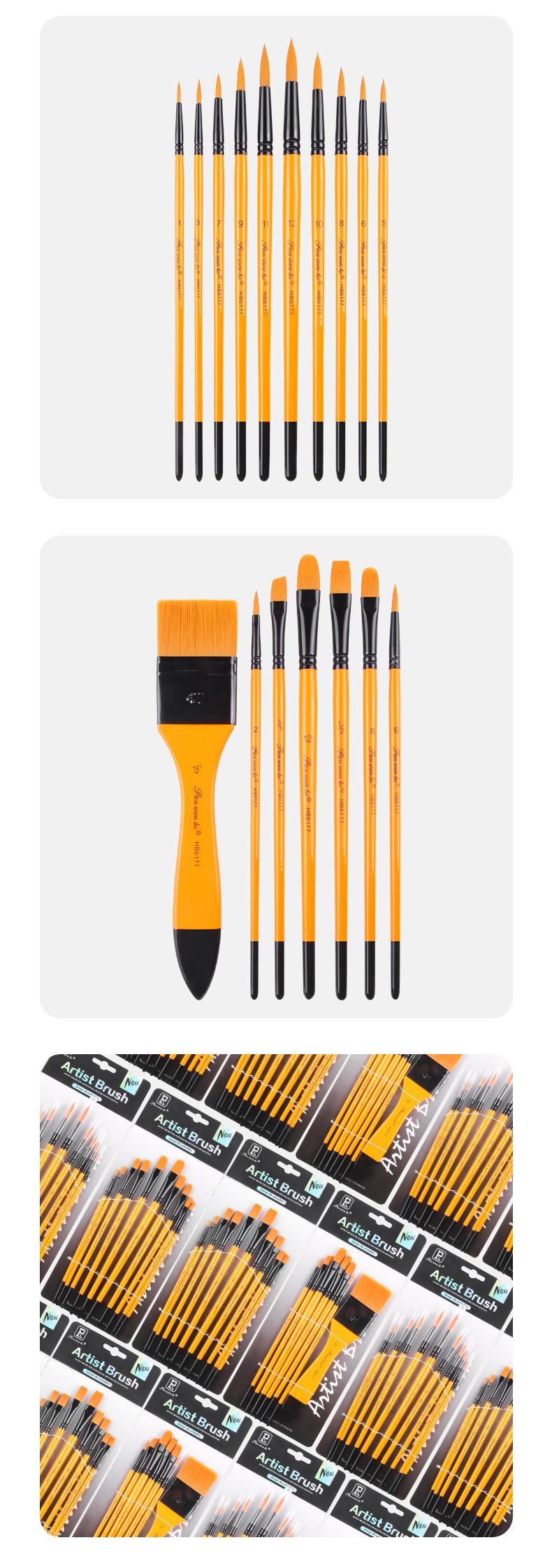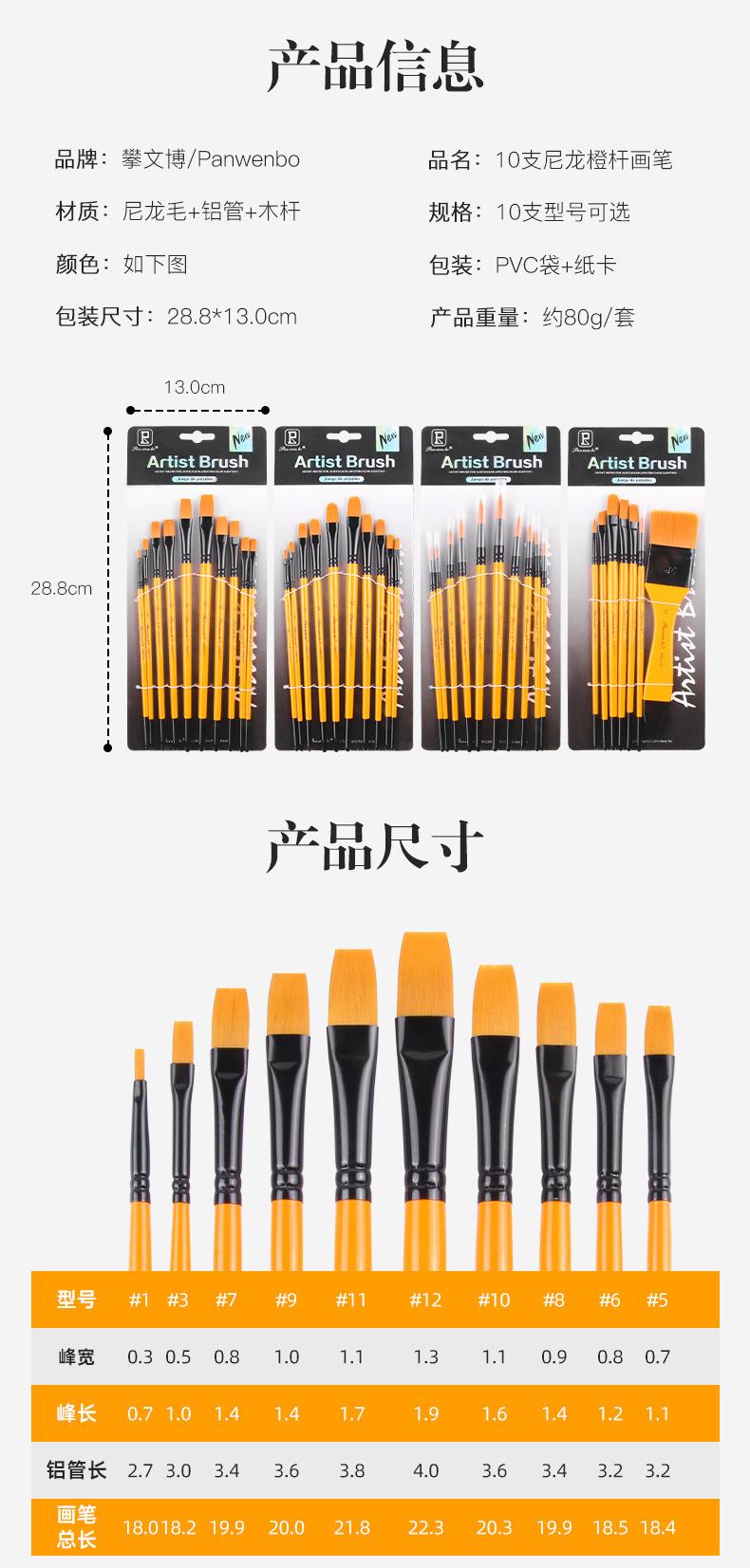 Nuevo juego completo de pinceles de madera maciza de 10 varillas de color naranja para pintar, incluye suministros de arte, gouache de nailon y acuarela.